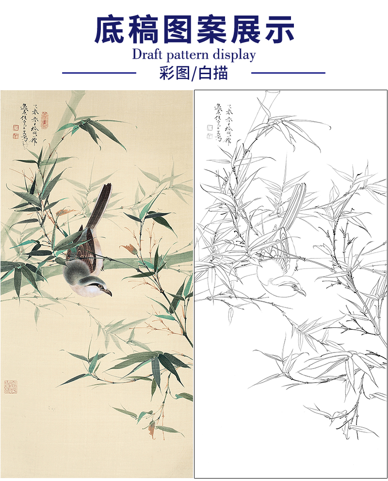 任重花鸟竹子工笔画白描底稿《幽篁伯劳》临摹勾线高清打印稿RD28