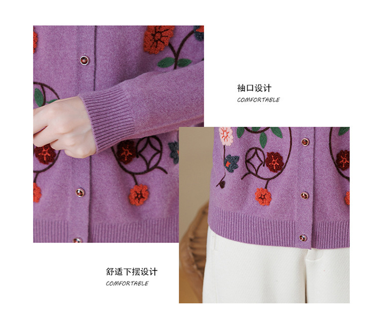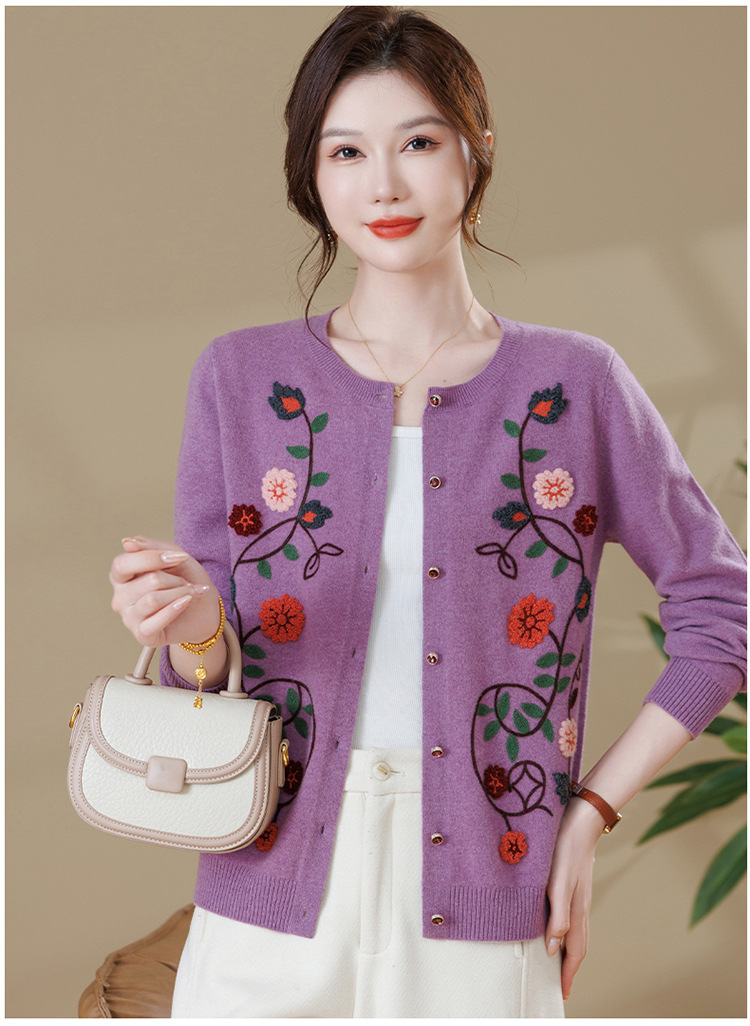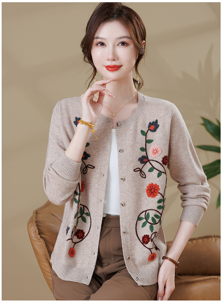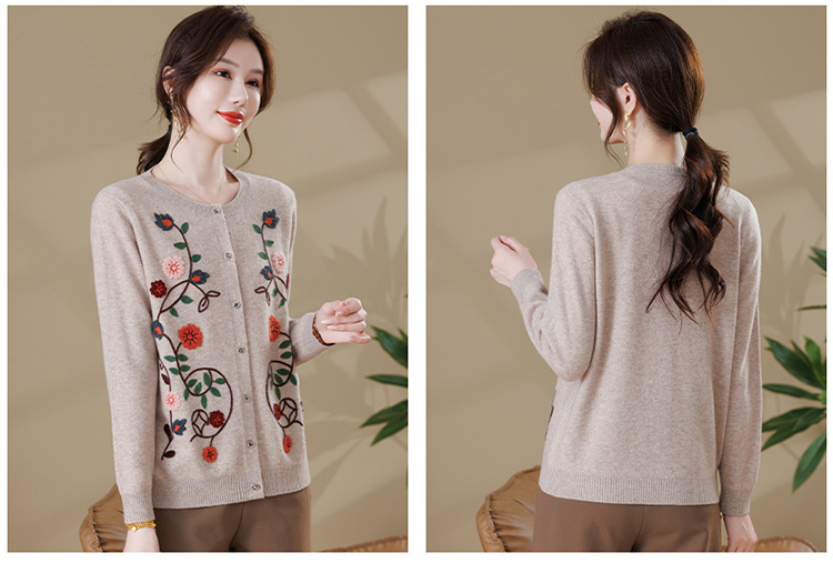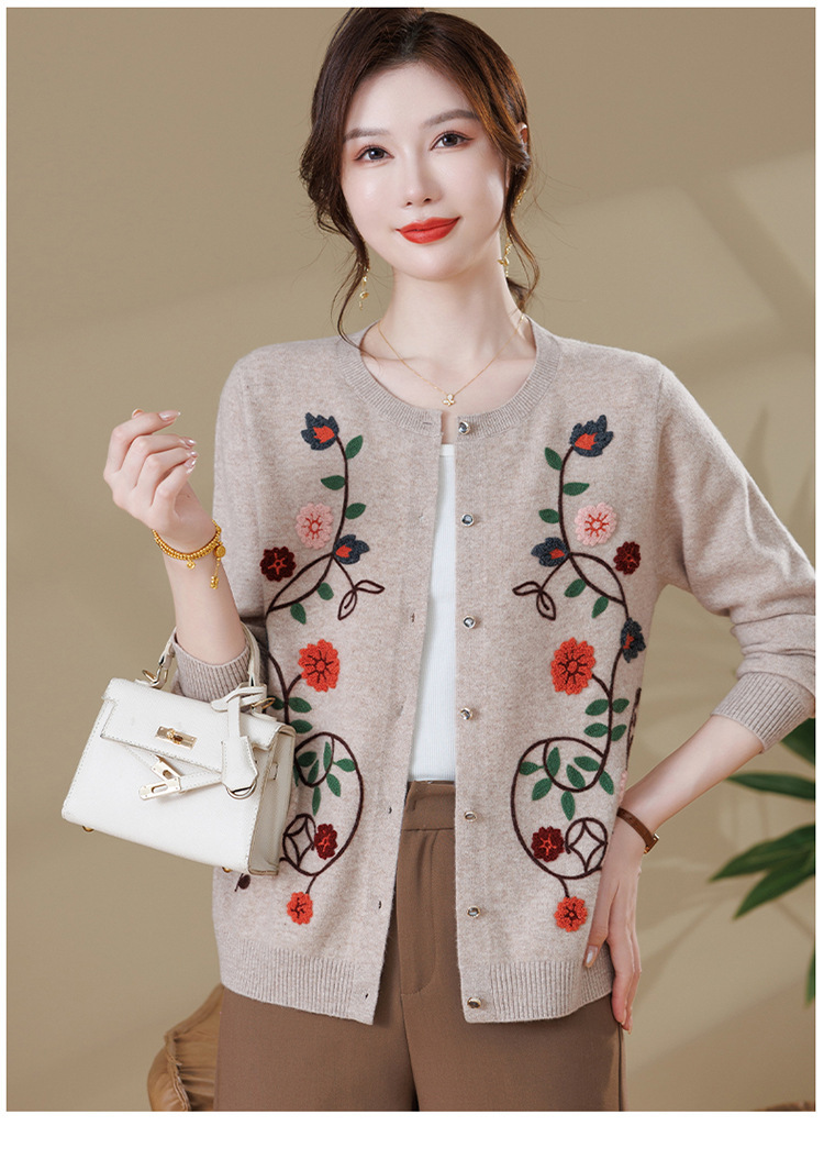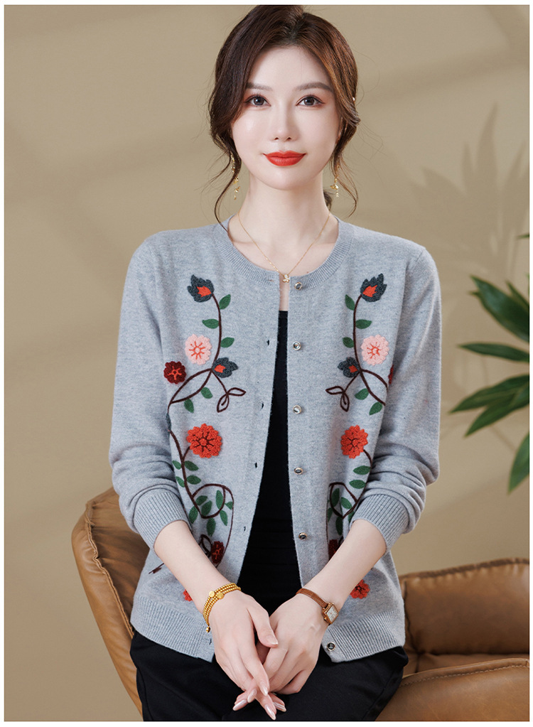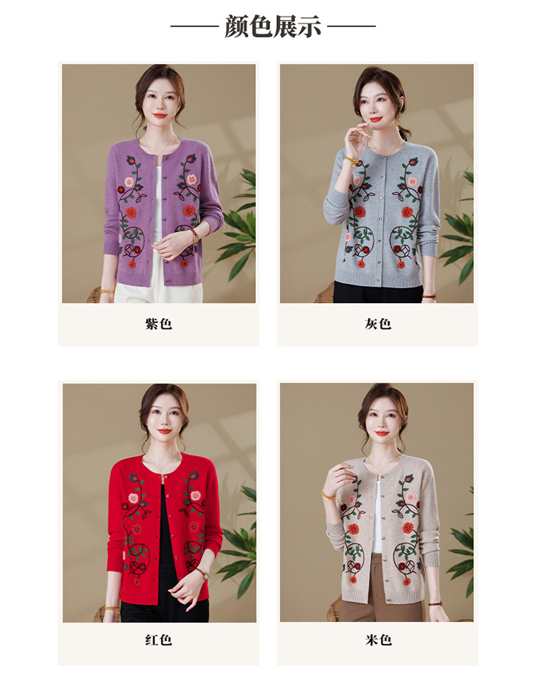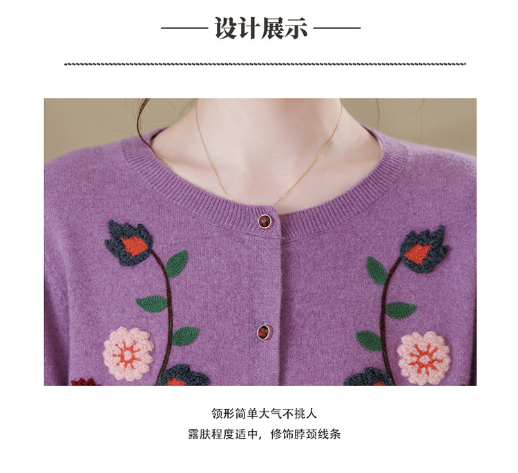 羊毛绒衫洋气妈妈针织衫开衫绣花