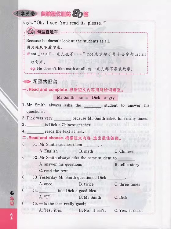 2024小学英语阅读强化训练80篇三四五六年级白金版68所教科所