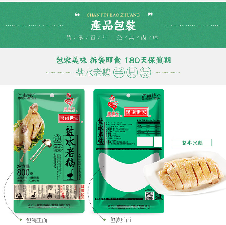 【蒋凤记】盐水老鹅肉食即食卤鹅熟食真空装小吃特产卤味咸鹅肉下酒菜