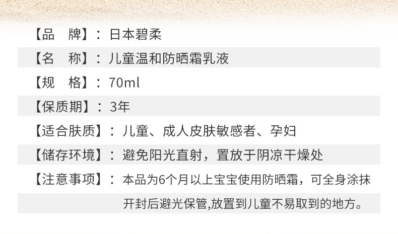 日本花王BIORE碧柔 儿童用防晒70ml SPF50