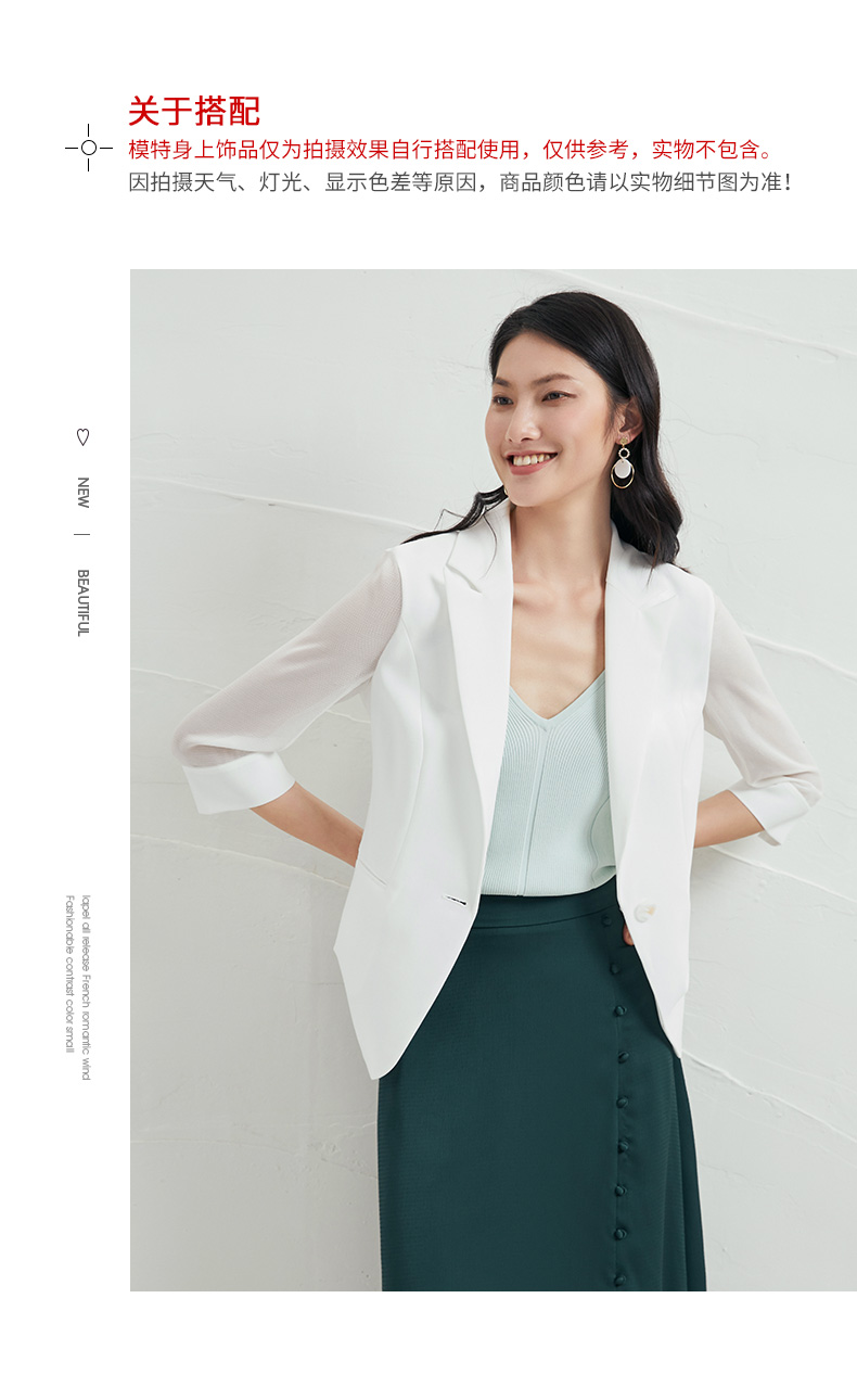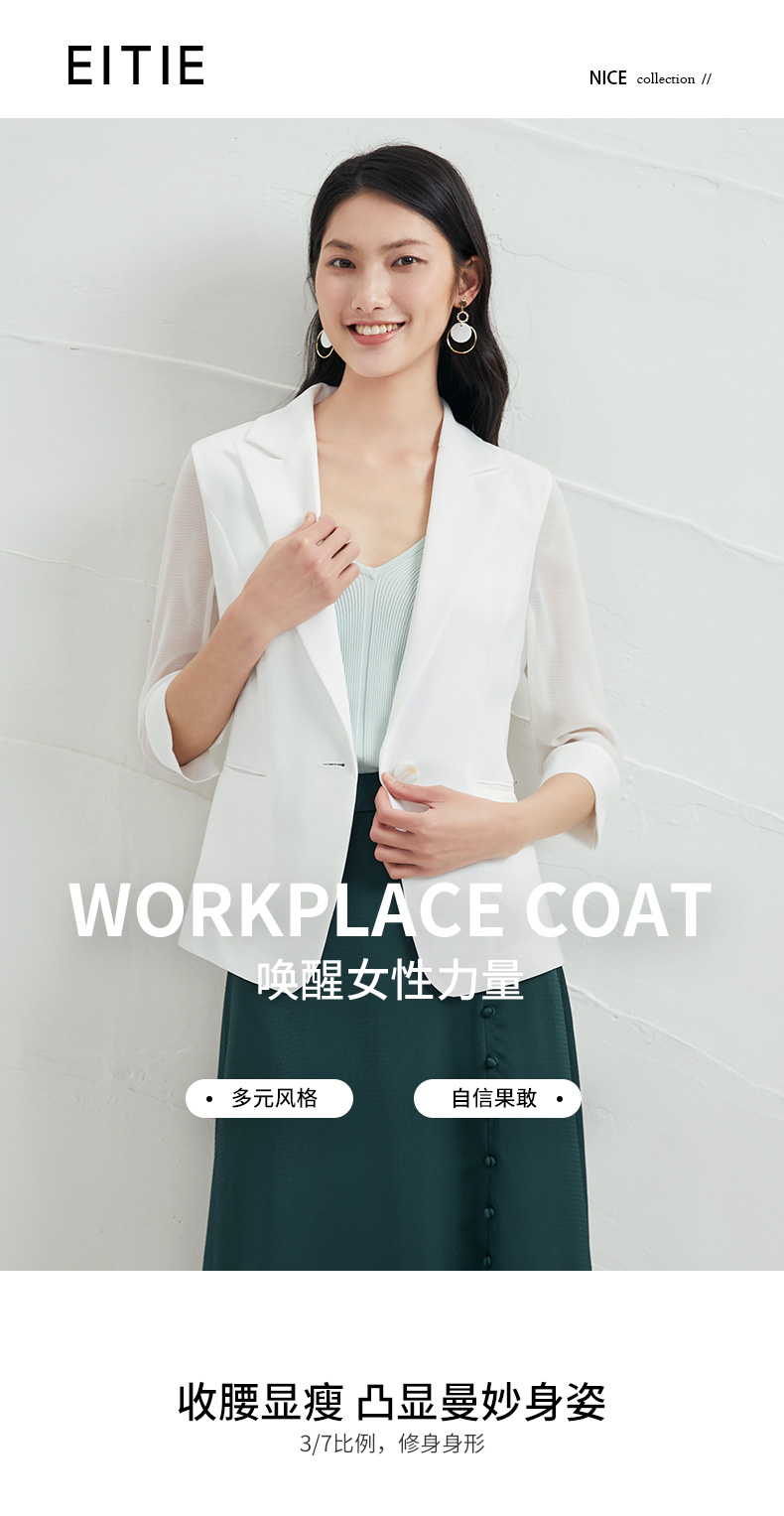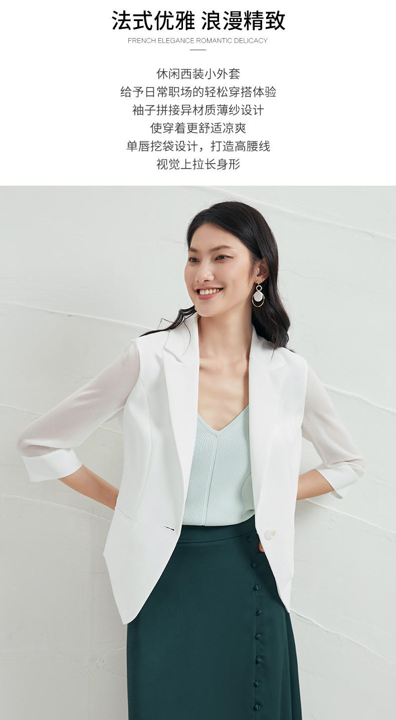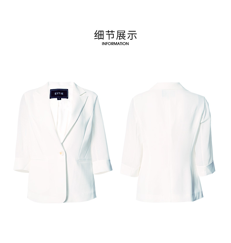 EITIE爱特爱春季新款通勤纯色七分袖西装短外套女6603302