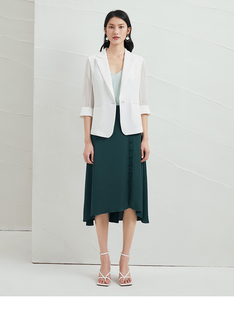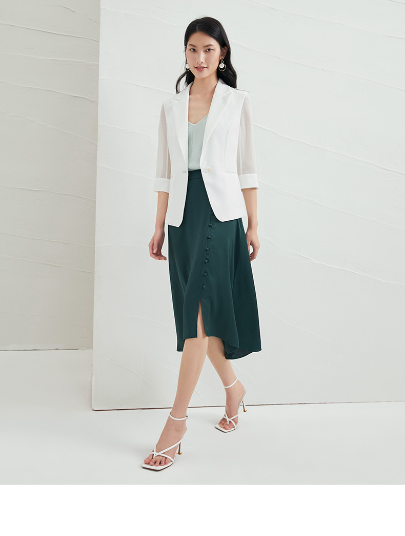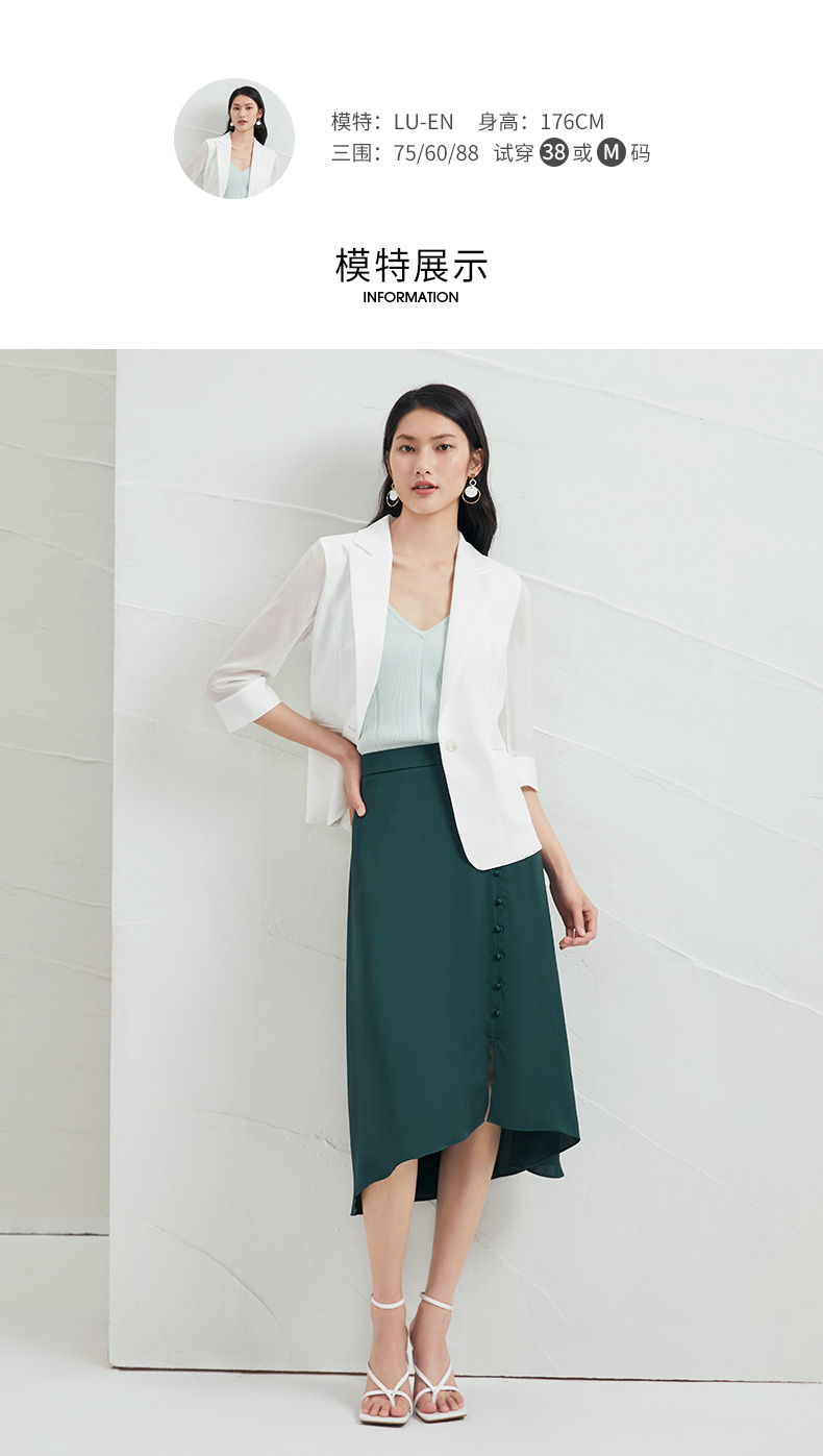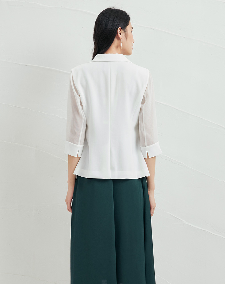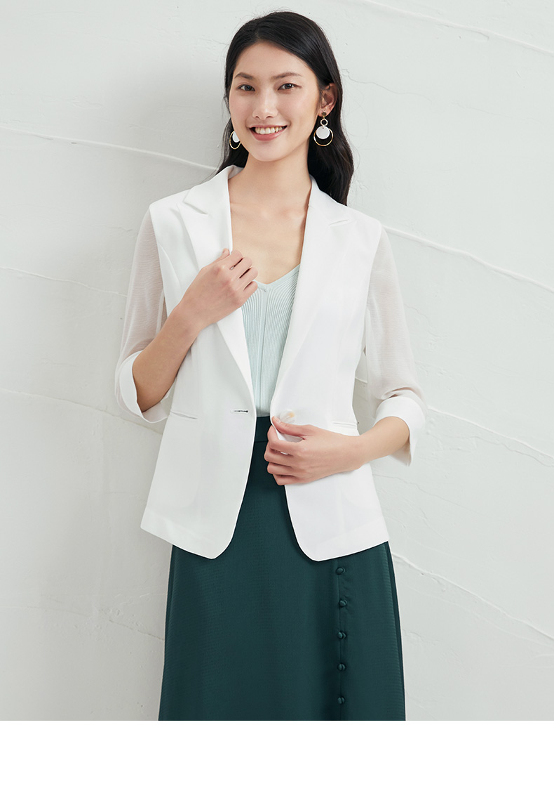 EITIE爱特爱春季新款通勤纯色七分袖西装短外套女6603302