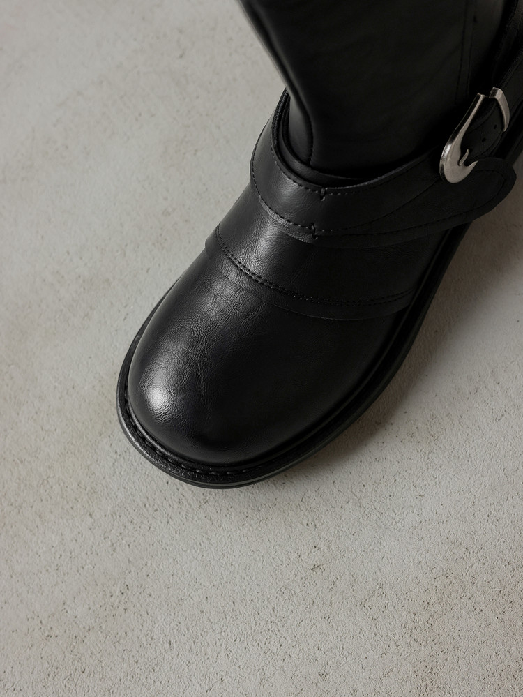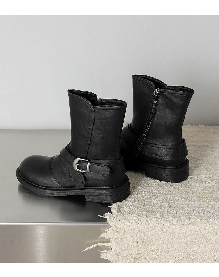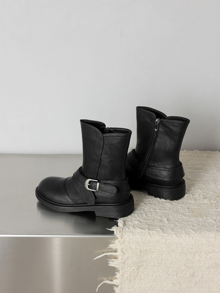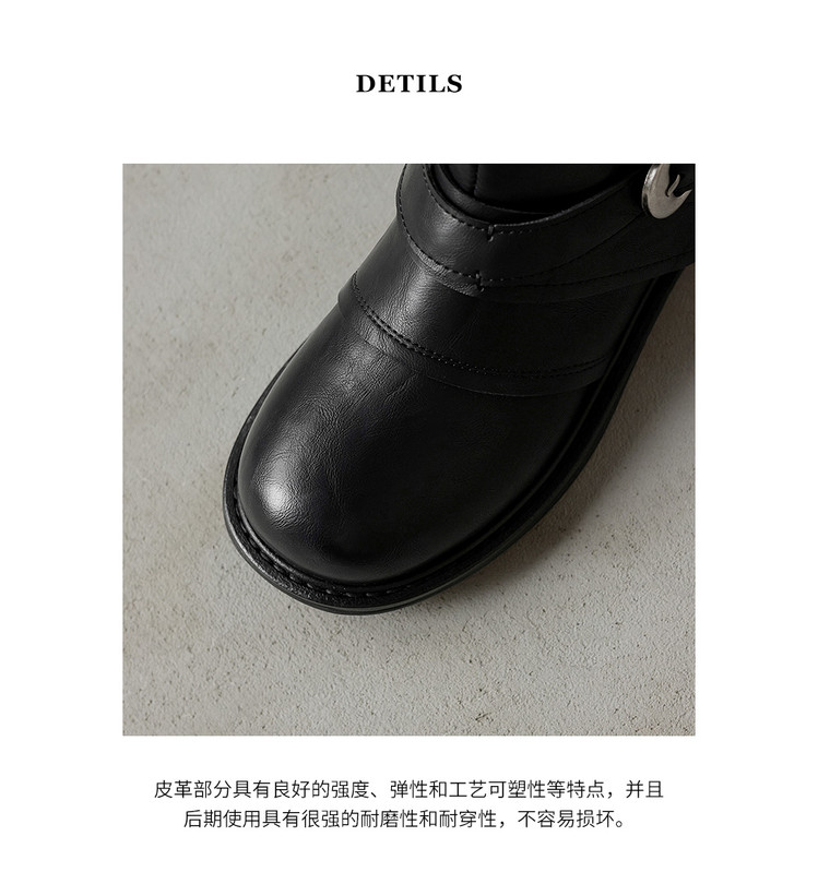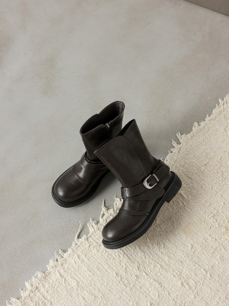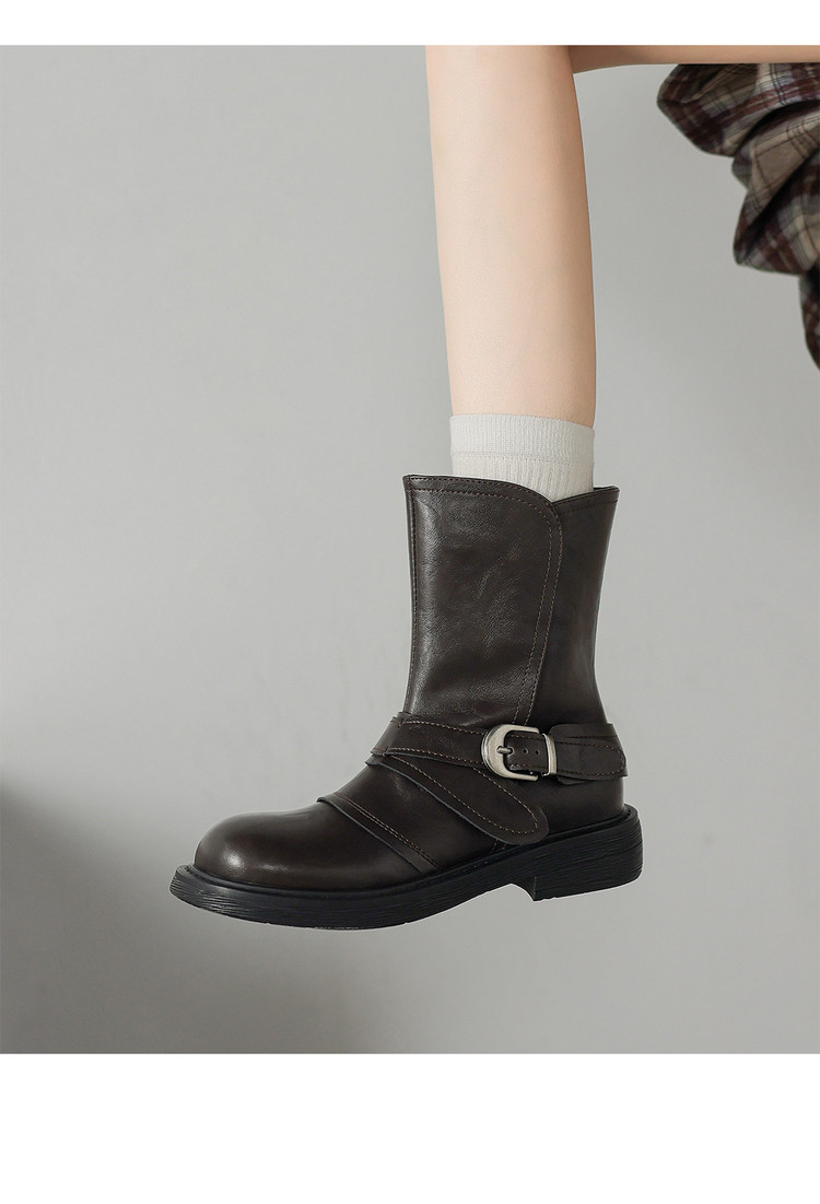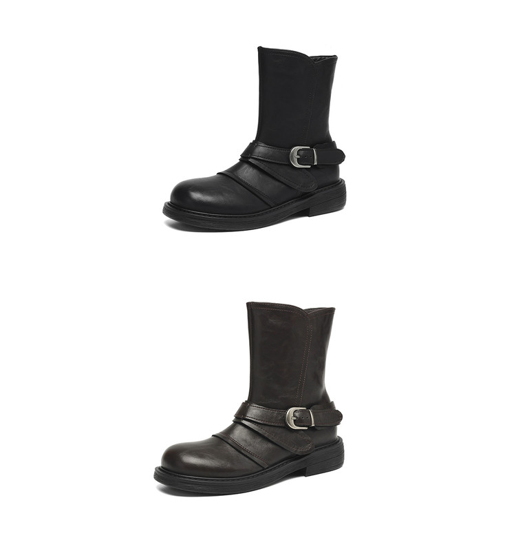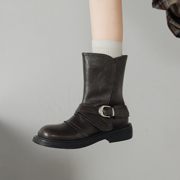 【预售5天】超好看!百搭交叉绑带真皮短靴女秋新款圆头粗跟侧拉链西部靴MX&mx35061