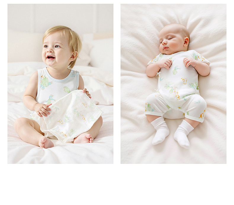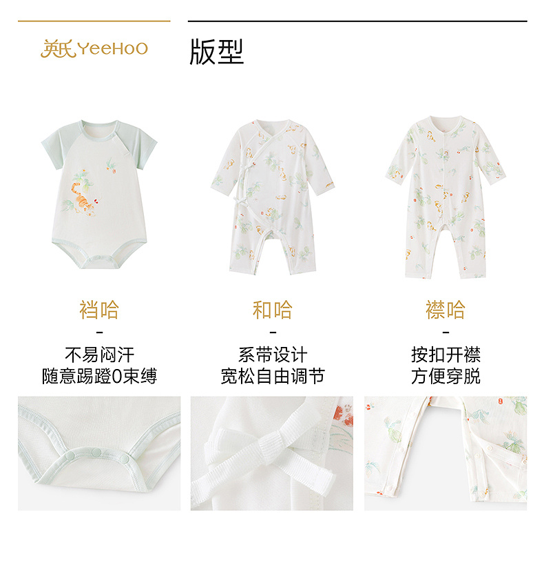 【商场同款】英氏婴儿宝宝哈衣四季透气新生儿睡衣10A抗菌衣服
