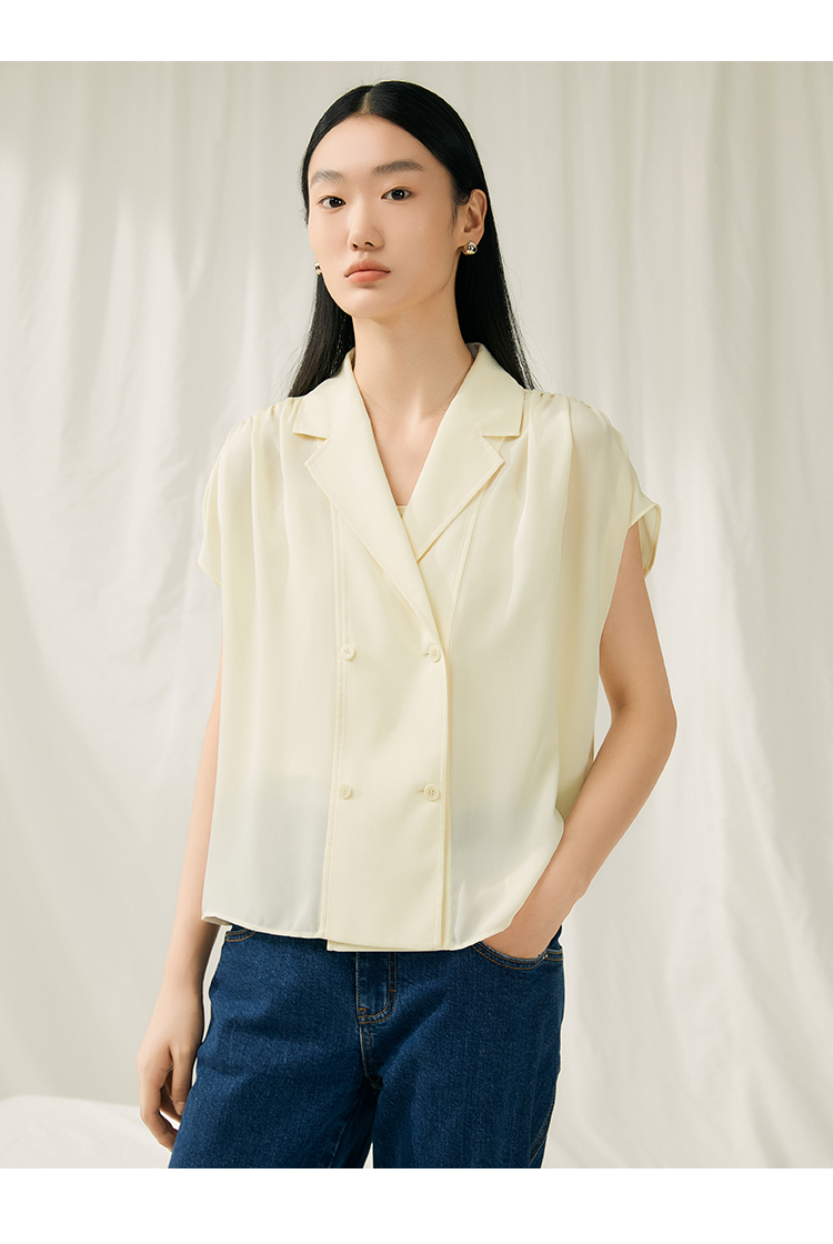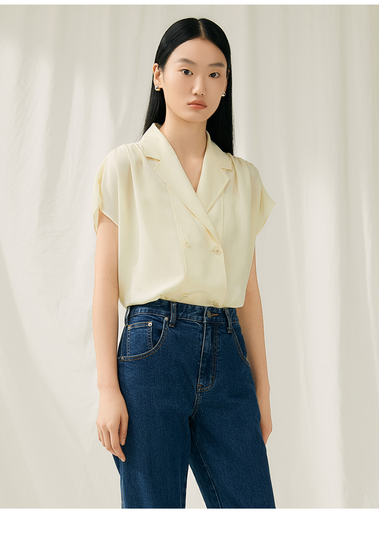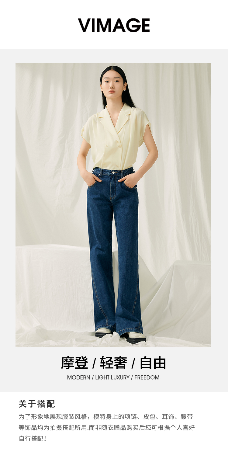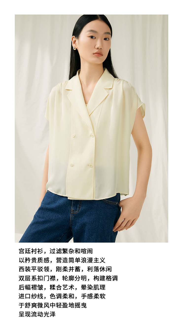 VIMAGE纬漫纪夏季新款翻领显瘦透气衬衫上衣V1909508