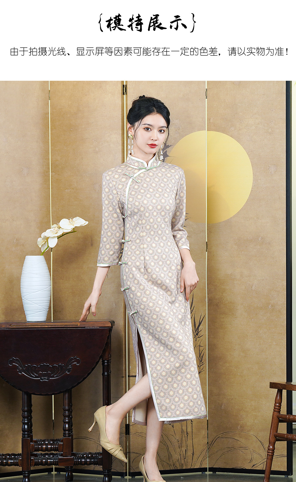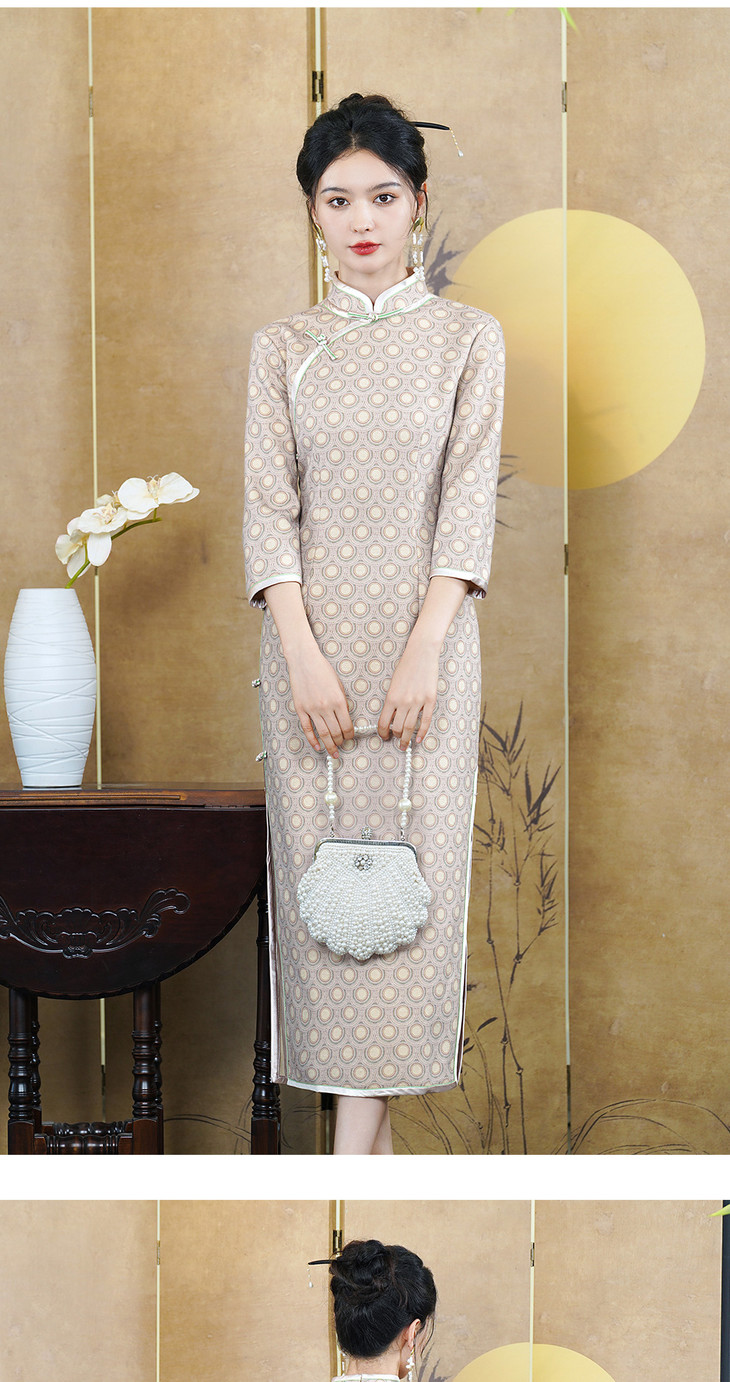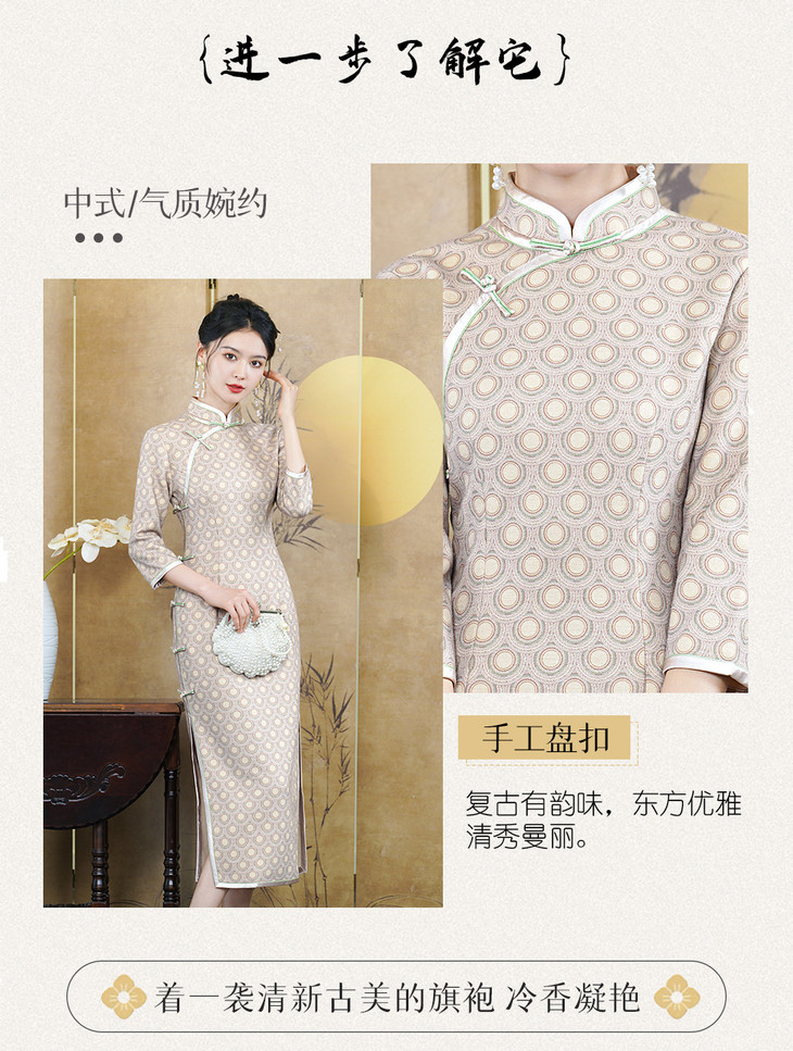 国风复古新中式,改良长袖加绒厚旗袍D23126