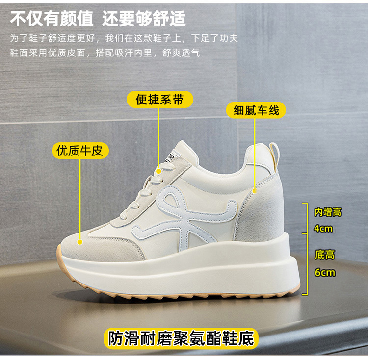新款阿甘鞋真皮厚底内增高10cm百搭休闲老爹鞋德训单鞋AM1320