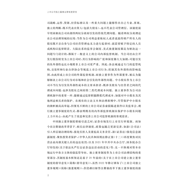 2023年4月,国务院办公厅印发《关于上市公司独立董事制度改革的意见》,各证券交易所同步修订了沪深主板、创业板、科创板及北交所的相关股票上市规则、规范运作或监管指引并发布了相关规定的征求意见稿,上市公司独立董事制度迎来重要改革。本研究以《公司法》修订引入单层制公司治理结构和新《证券法》全面推行注册制为背景,结合国务院《关于上市公司独立董事制度改革的意见》,以优化公司治理结构为目标,构建与我国上市公司治理需求相契合的独立董事法律制度,从而确保独立董事制度可持续发展,提高证券市场透明度,助推我国资本市场注册制改革深化,实现我国公司治理体系与治理能力现代化。