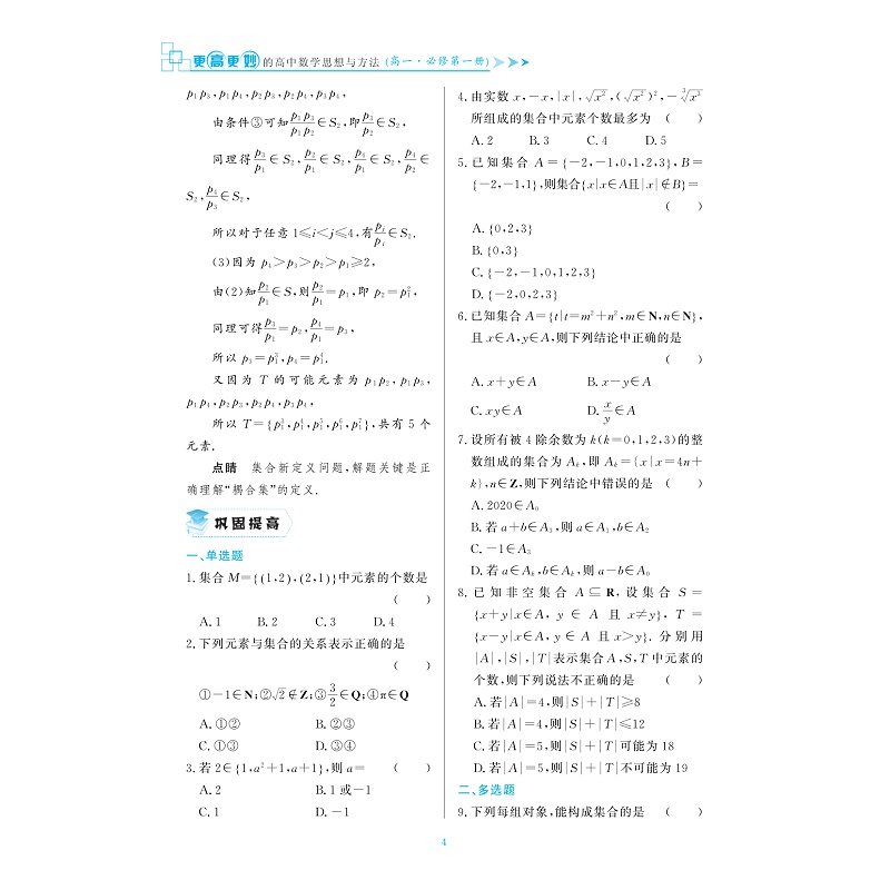 书名:更高更妙的高中数学思想与方法(高一.必修第一册)