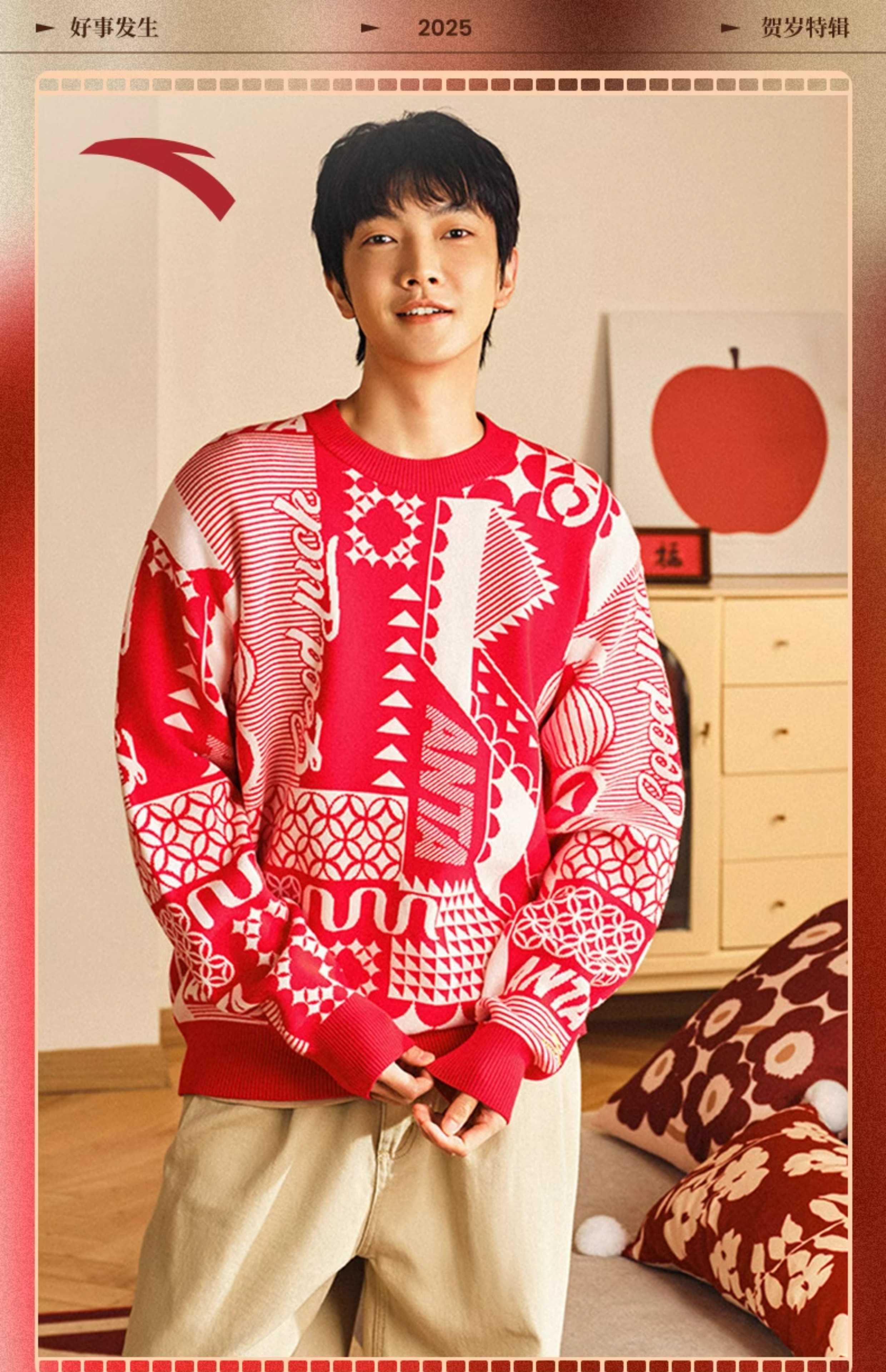 安踏好事发生丨新年款套头毛衣男士冬季保暖圆领编织衫152518704