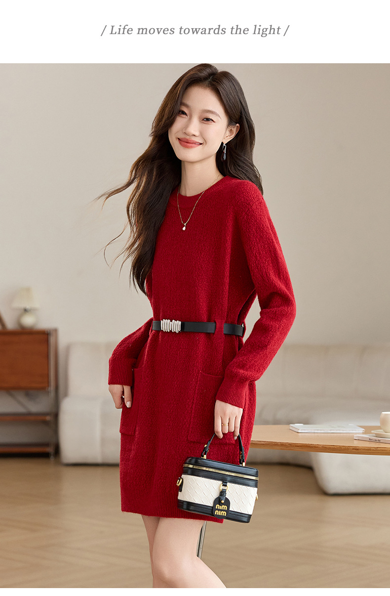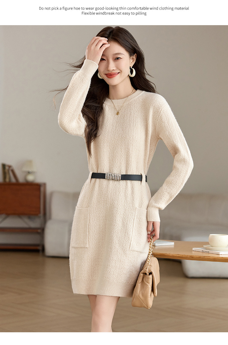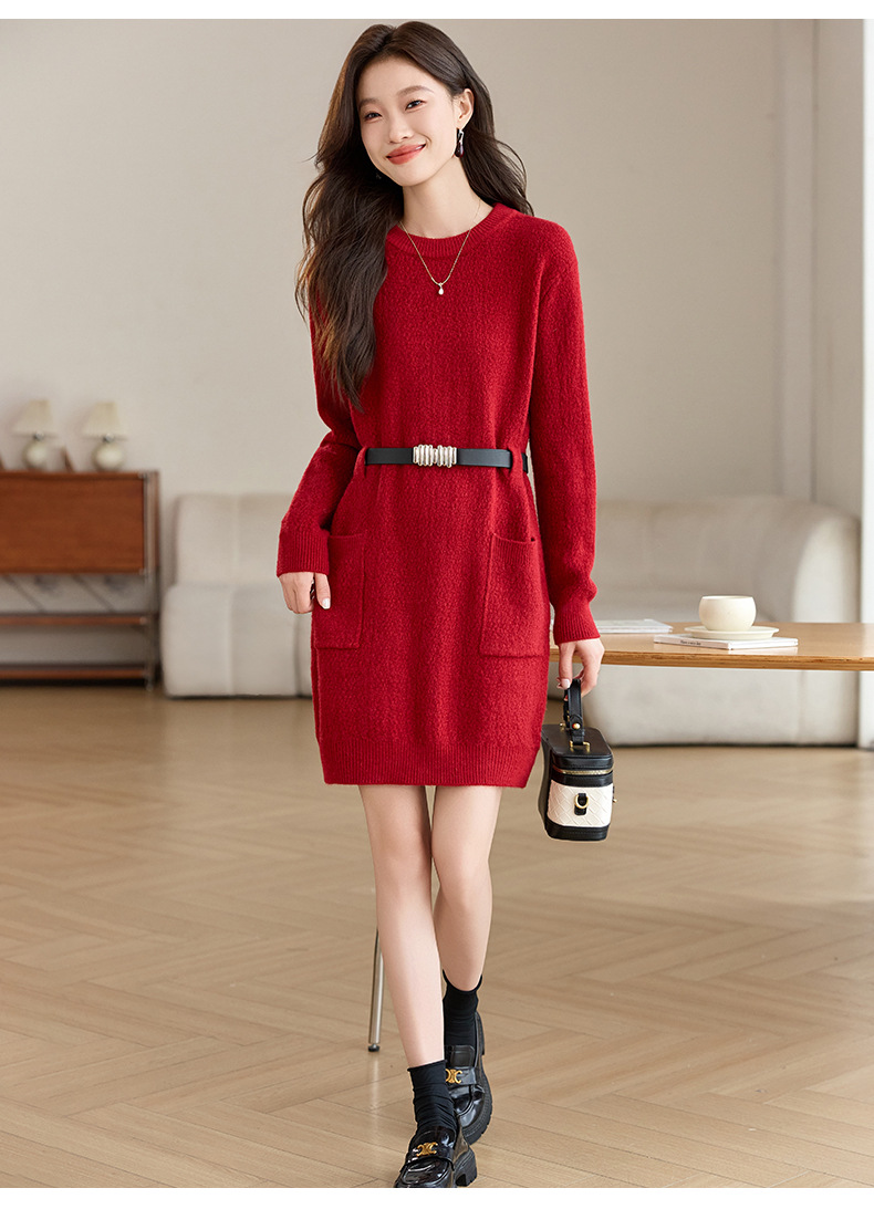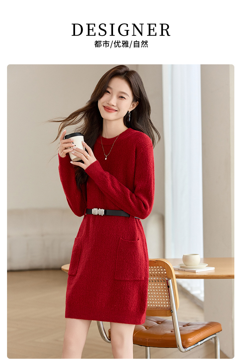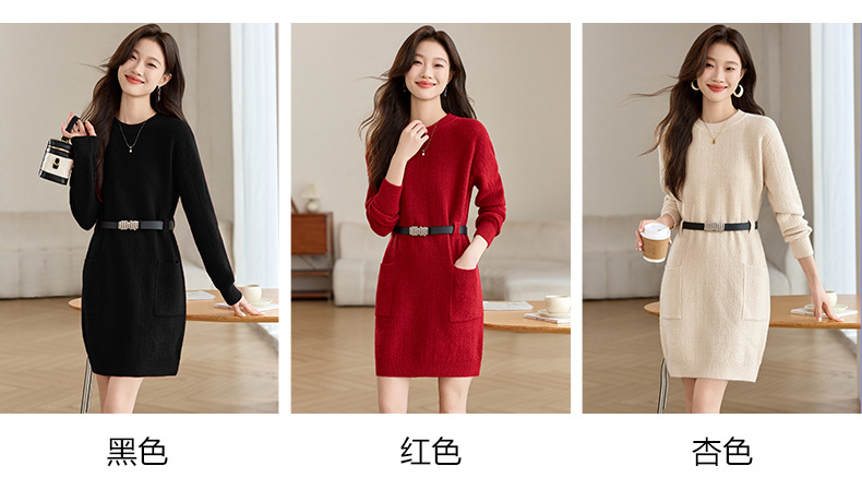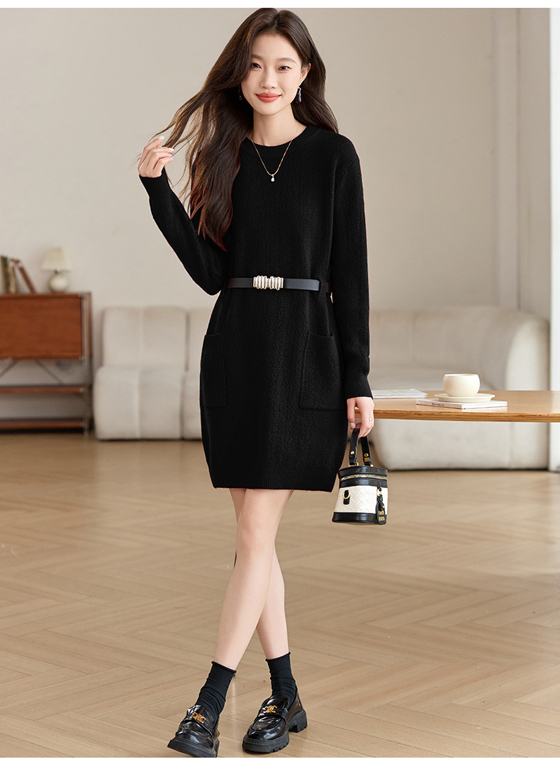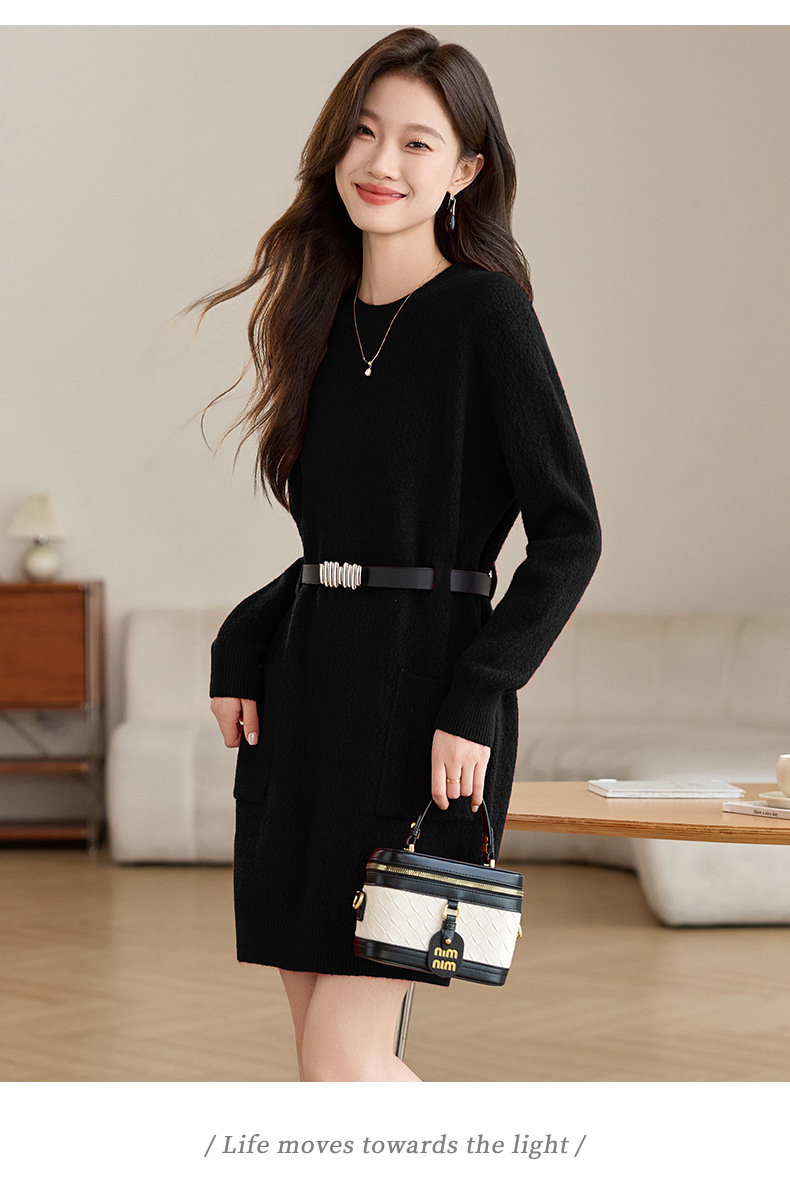 CC-XFY-2302秋冬新款配大衣内搭毛衣裙法式收腰显瘦打底针织连衣裙小个子