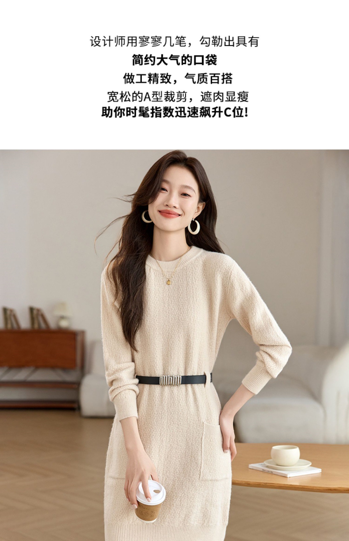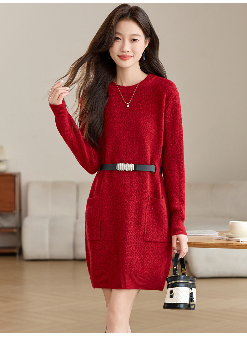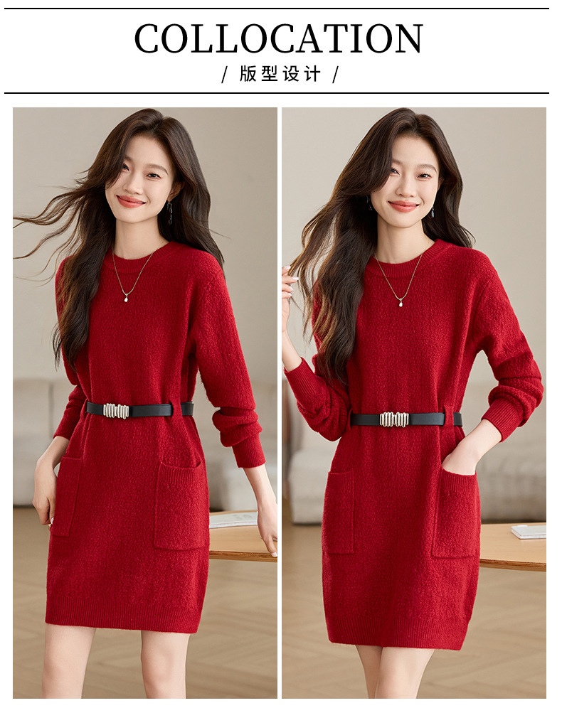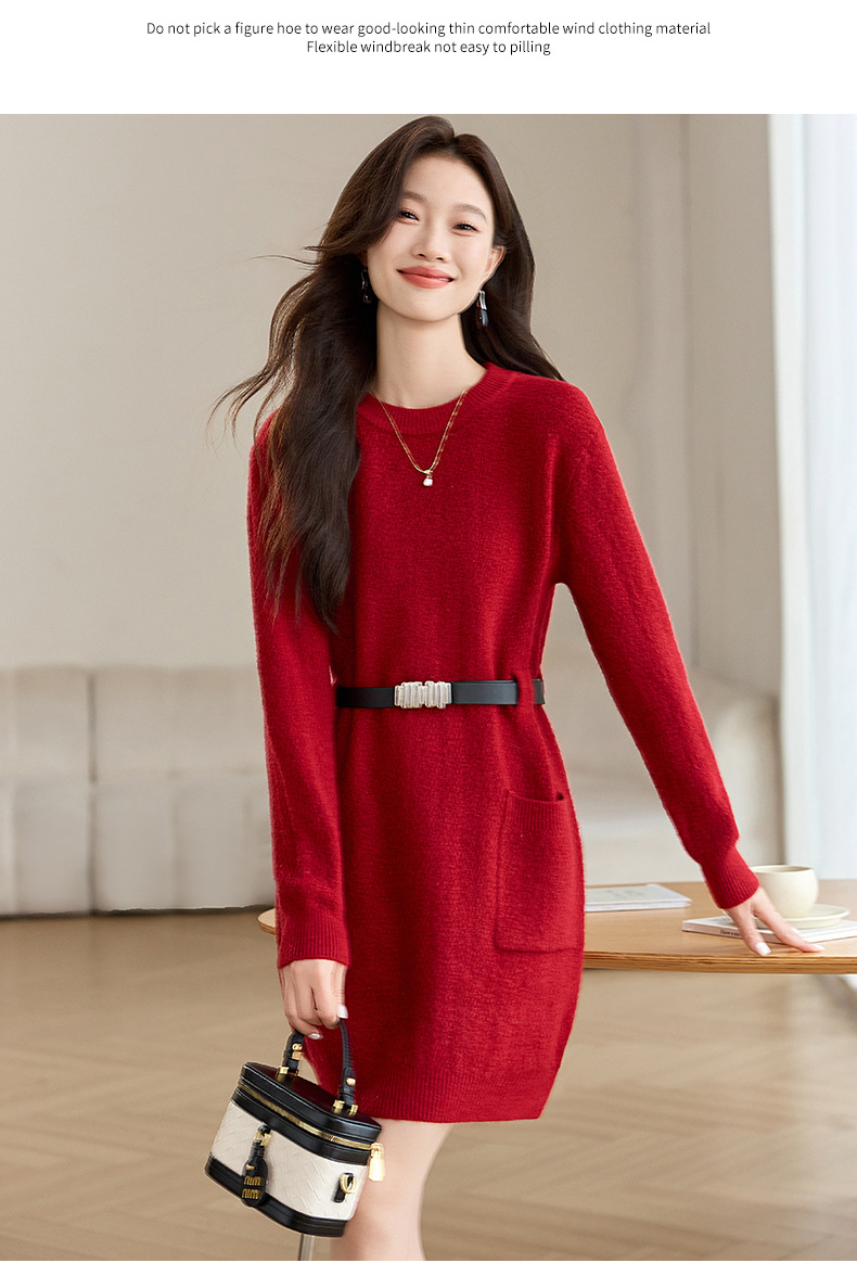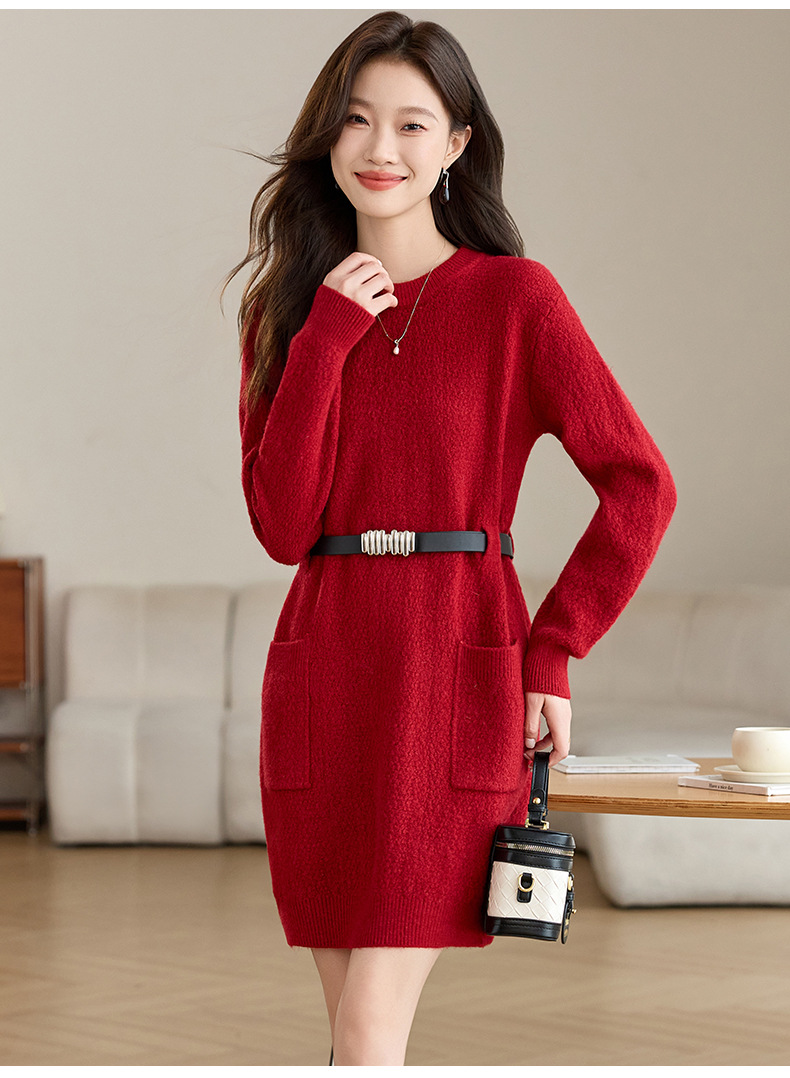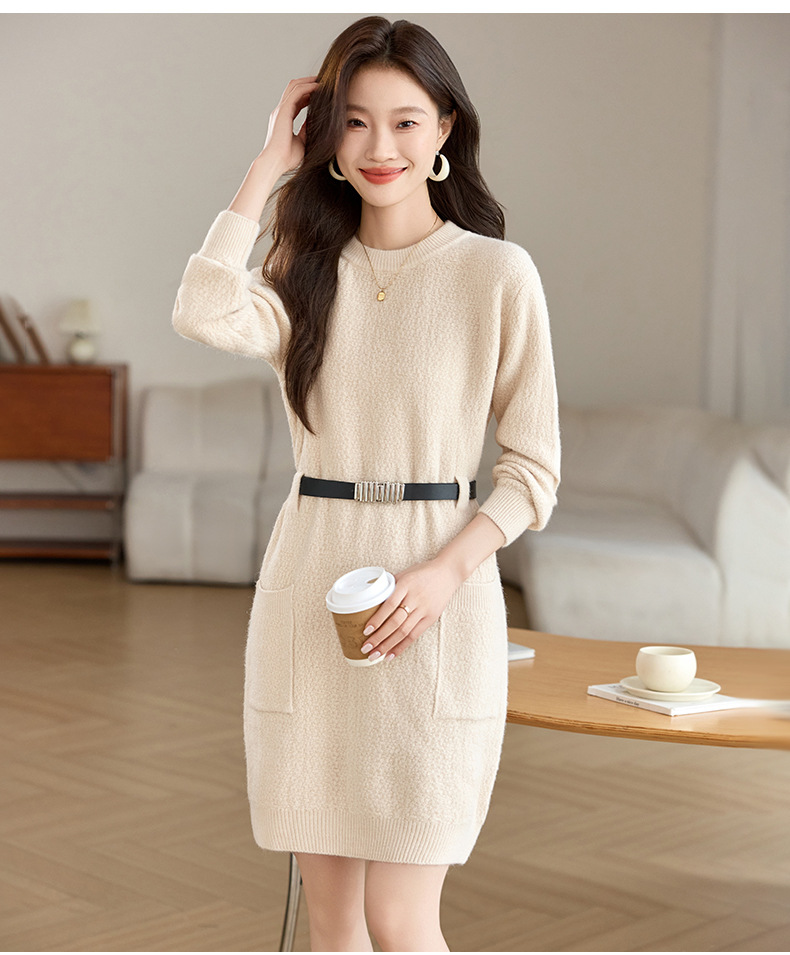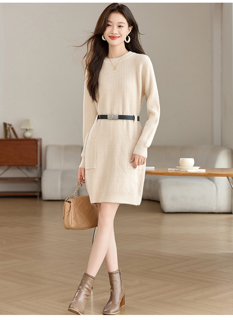 CC-XFY-2302秋冬新款配大衣内搭毛衣裙法式收腰显瘦打底针织连衣裙小个子