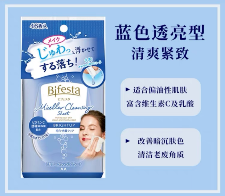 👑Mandom Bifesta曼丹卸妆湿巾-24版 🌟一片卸妆 清爽洁净 💎棉柔亲肤:优质棉膜布减少搓揉摩擦 💦保温润肤:植物美容液成分卸后滋润不紧绷 👍卸后免洗:满满卸妆水精华彩妆不残留 💫大尺寸设计150mm*200mm一张可卸全脸 💗#粉色:适合偏干性肌肤 ✨#蓝色:适合偏油性肌肤 🔥#黑色:适合浓妆卸除