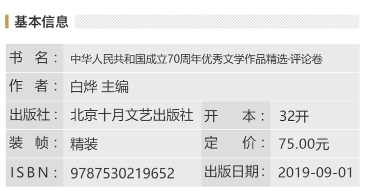 书名:***人民共和国成立70周年***文学作品精选·评论卷