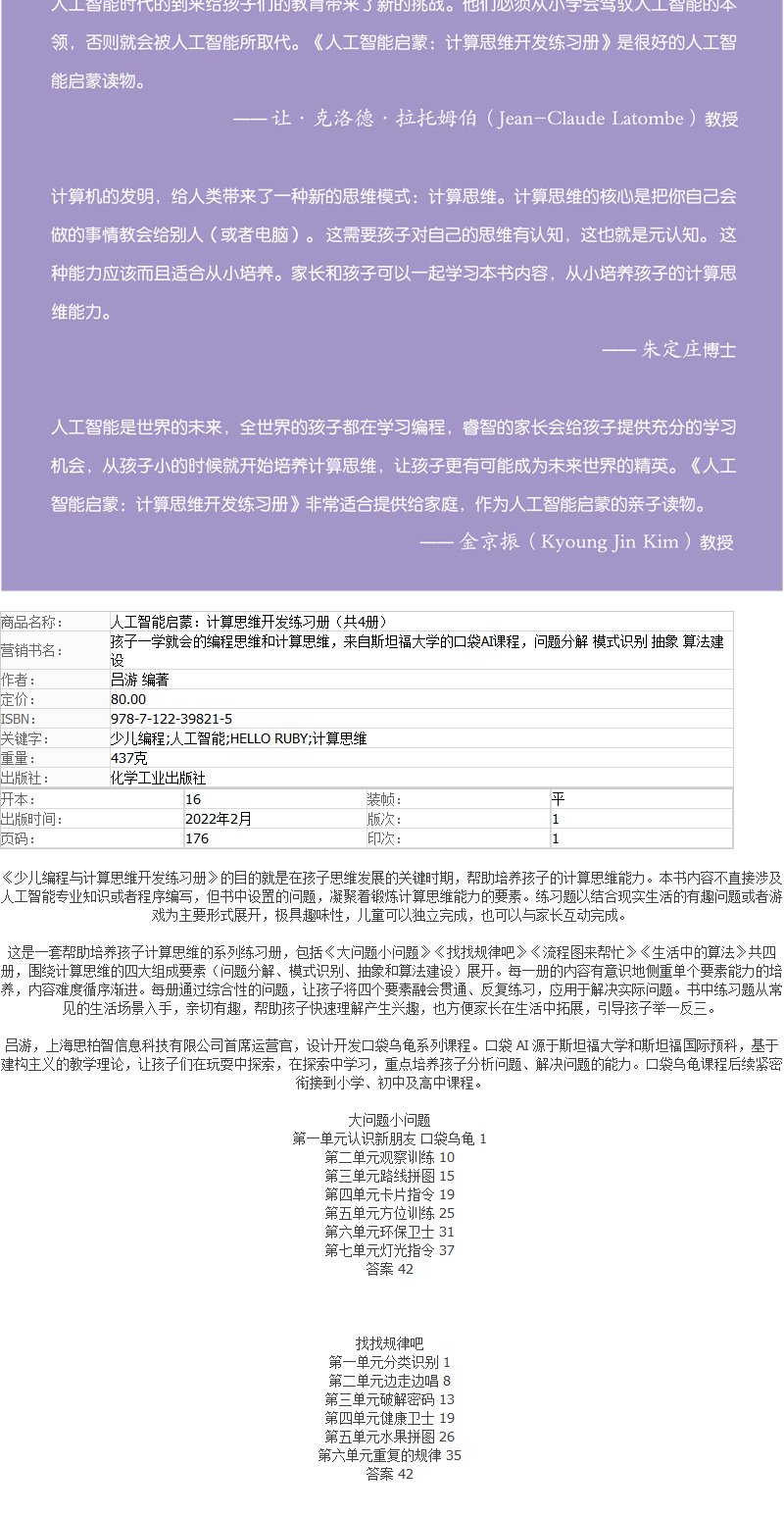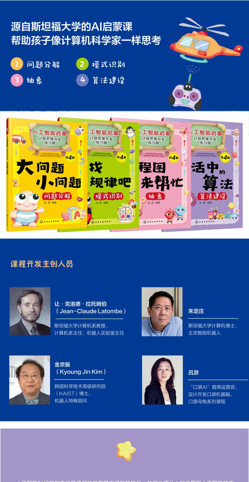 人工智能启蒙 计算思维开发练习册 共4册 6-9-12岁儿童编程书籍 儿童编程思维计算思维启蒙书籍 人工智能启蒙书籍 中小学科普读物