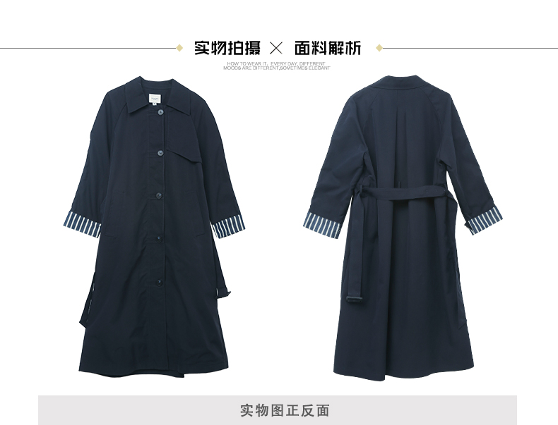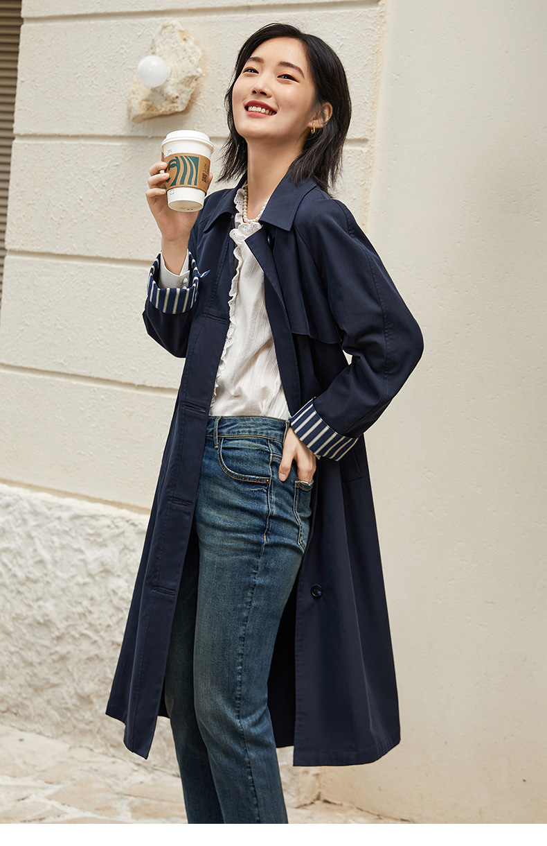 藏不住的优雅!藏青色风衣,袖口条纹细节增添精致感