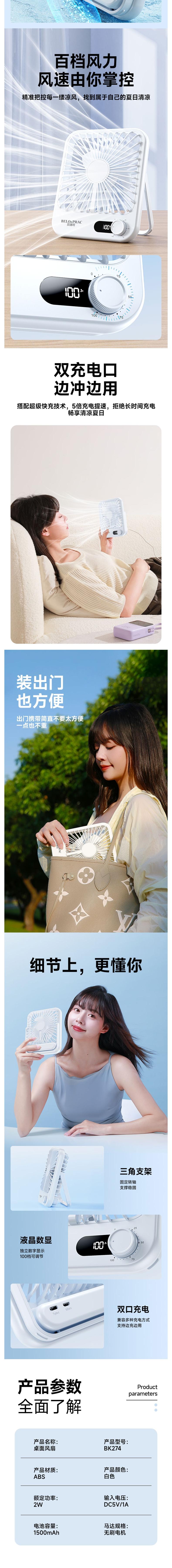 贝洛可 清凉一夏-桌面风扇1500mAh+2W BK274