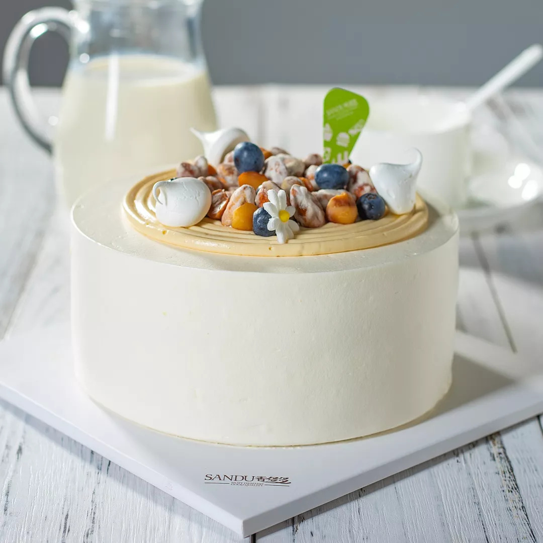 榛 心 榛 意:浓郁的杏仁蛋糕搭配香甜的牛奶奶油,甜而不腻, 唇齿留香,外观纯洁简单,内在巧克力夹心嫩滑细腻,上面铺满的杏仁坚果不仅有益于身心健康,还具有很好的美容效果哦!