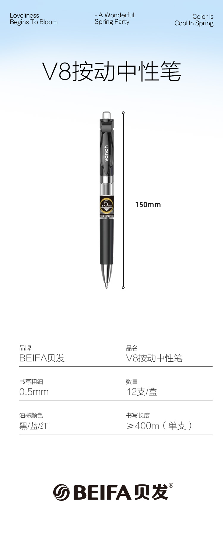 【贝发】V8黑色混色中性笔
