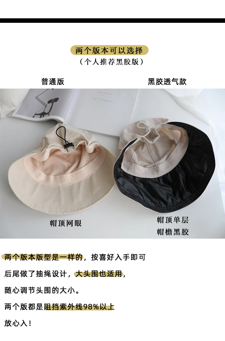 雀说赵露思同款防晒帽黑胶大檐防紫外线鸭舌帽女夏薄款遮阳帽子渔夫帽WAL