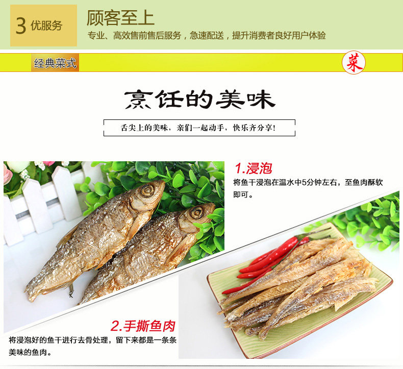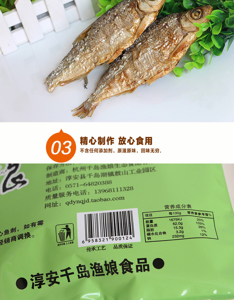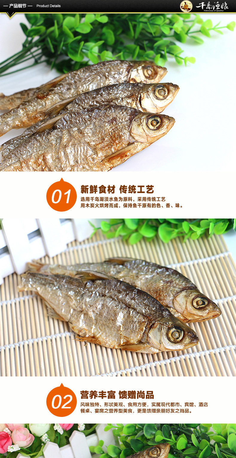 划线价格为部分专柜价格,千岛湖的大眼华鳊鱼干烘制而成 , 需要洗净,除净内脏,反复烘烤12小时以上制作而成,耗时,耗费人工,是千岛湖传统的鱼干,也是千岛湖本地的特色特产.烘制之后的鱼干大小在12cm左右,一包150g大约10条左右,均是精挑细算!