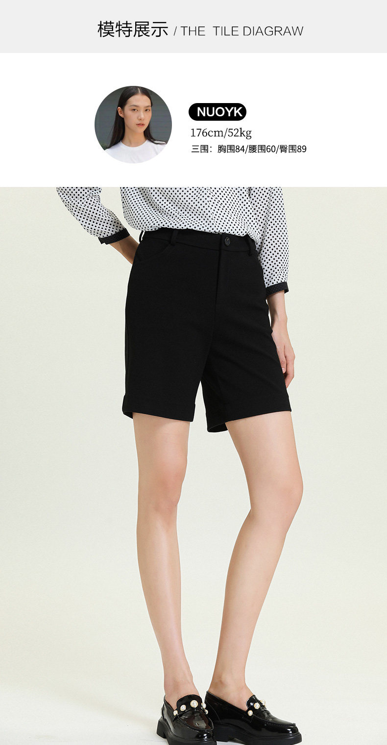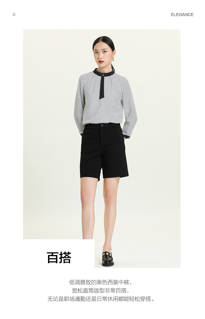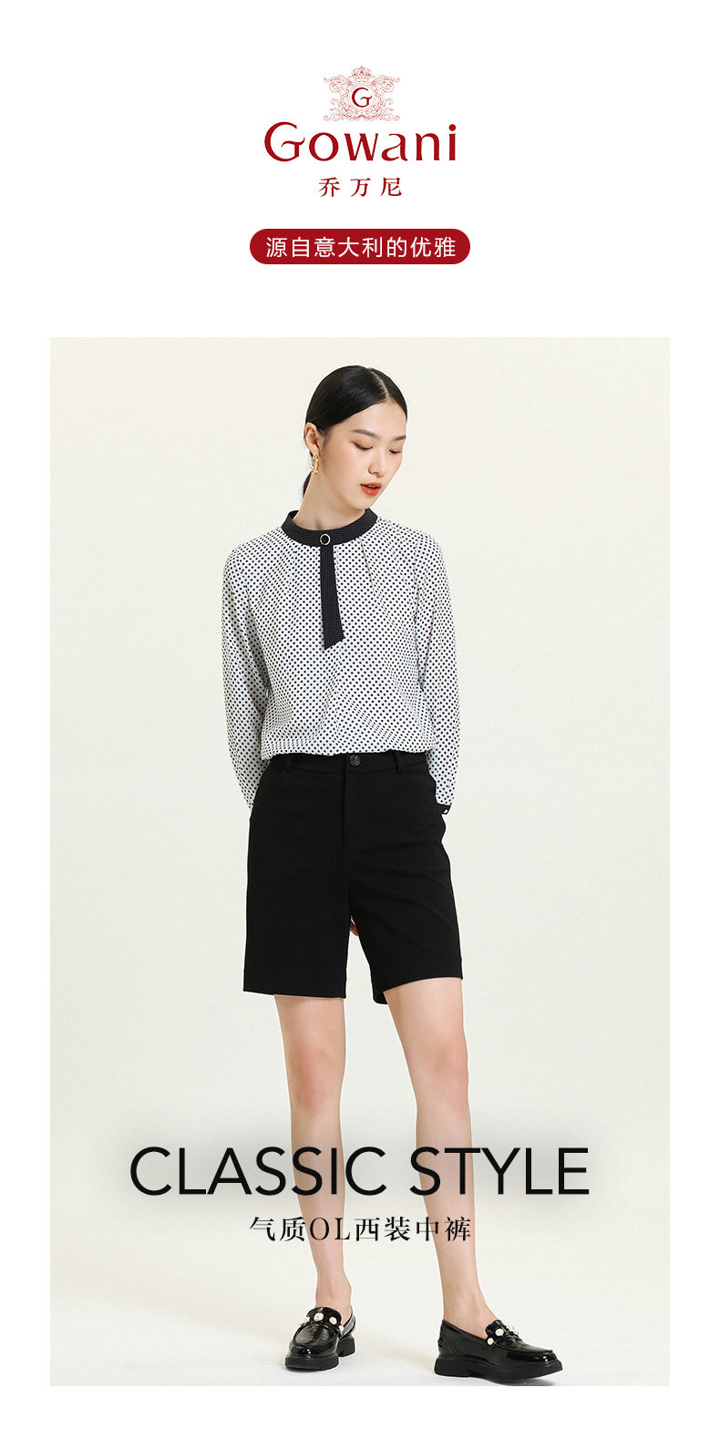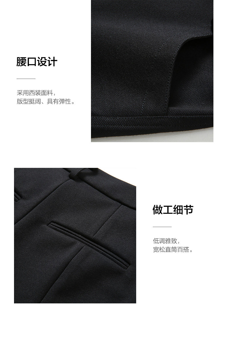 乔万尼新款休闲宽松高腰显瘦中裤黑色阔腿直筒五分裤ES3F575