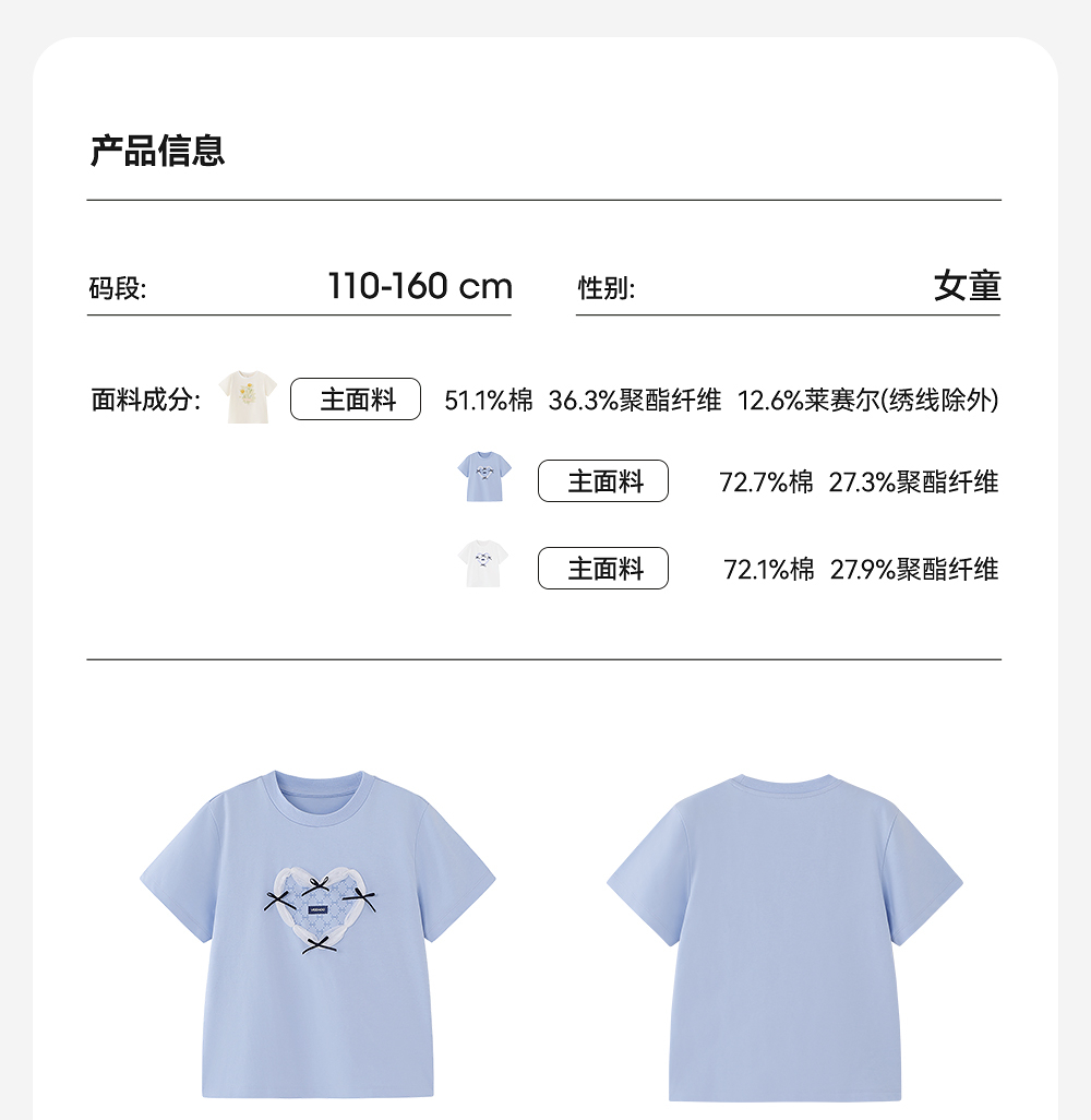 英氏儿童T恤夏季短袖透气百搭女童休闲T恤中大童短袖上衣2025新款