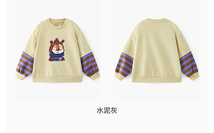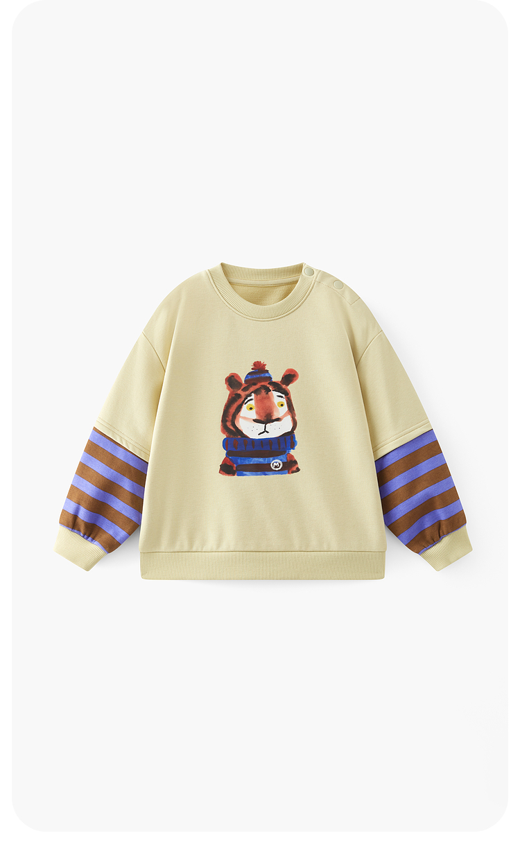 【MQD】童装男小童圆领卫衣秋季新款假两件小老虎印花儿童上衣