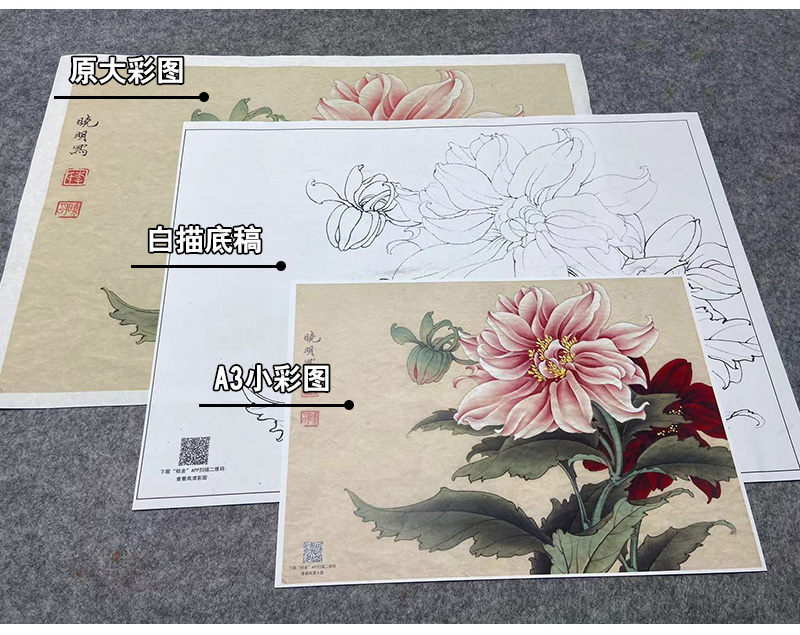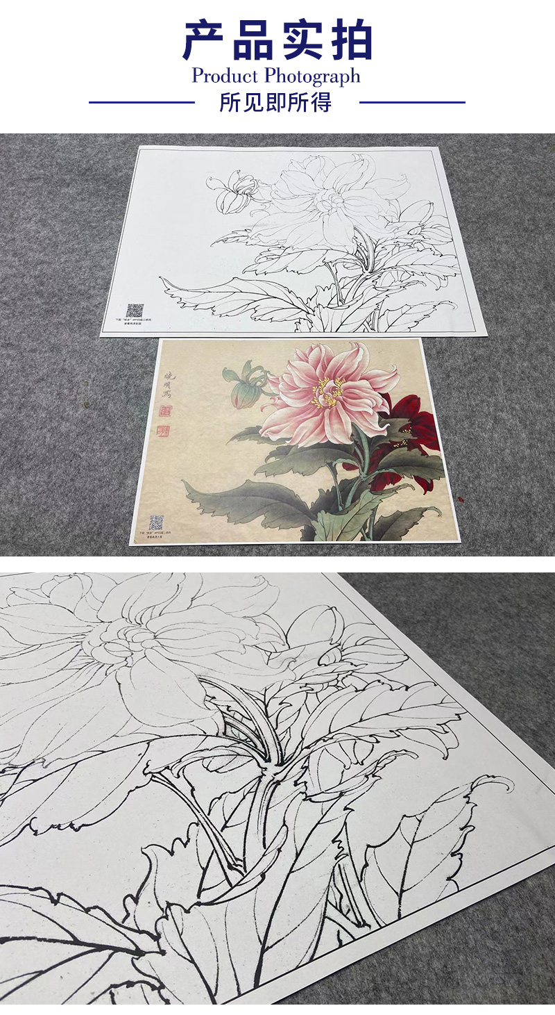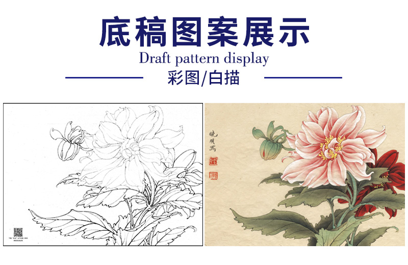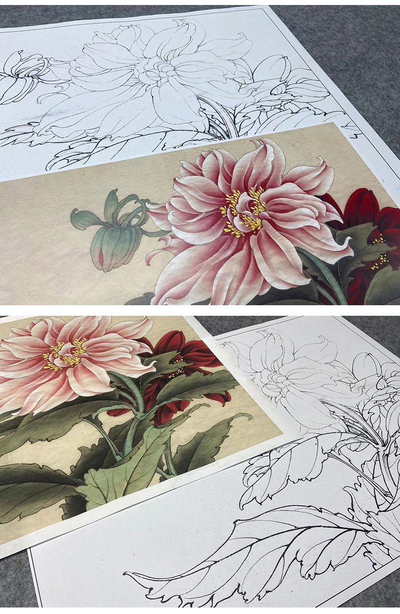 【大彩图】李晓明工笔画白描底稿小品《大丽菊》菊花临摹勾线花鸟线稿K102