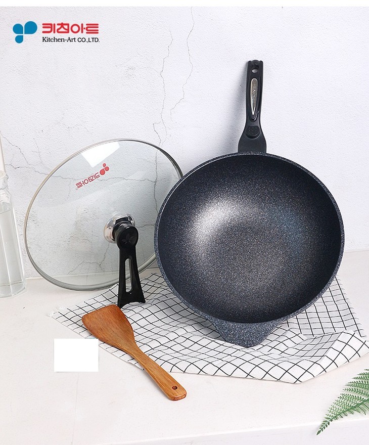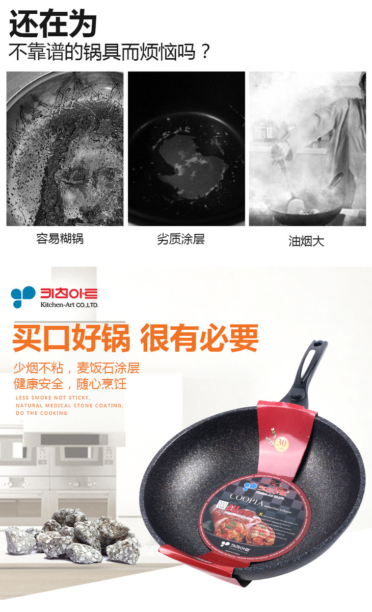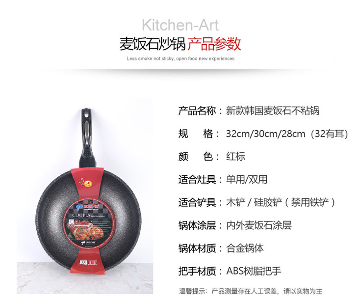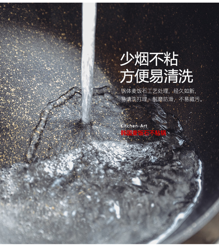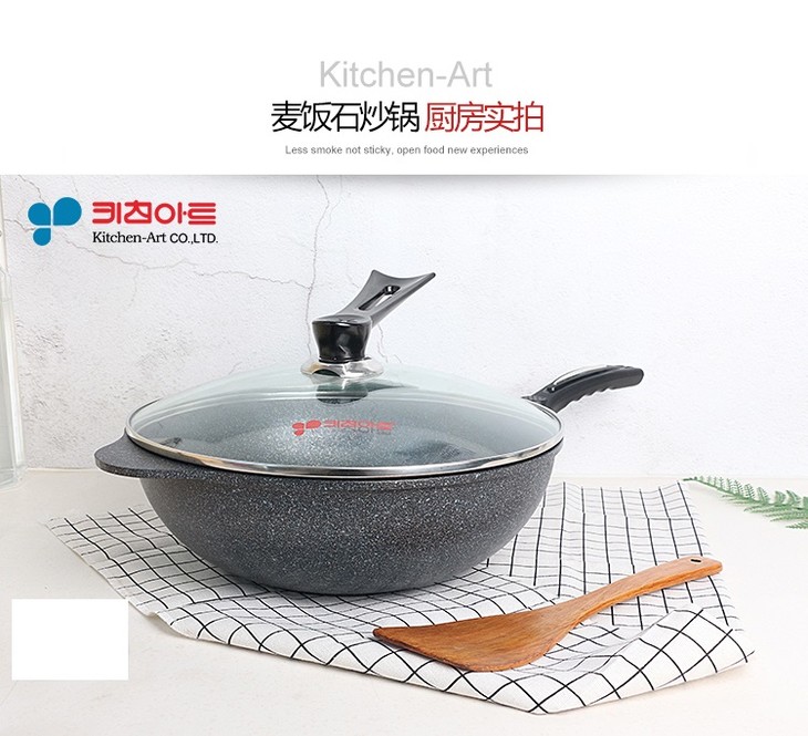 【门店直发】Kitchen-Art韩国进口麦石锅麦饭石炒锅不粘锅电磁炉燃气通用赠木铲32CM礼盒