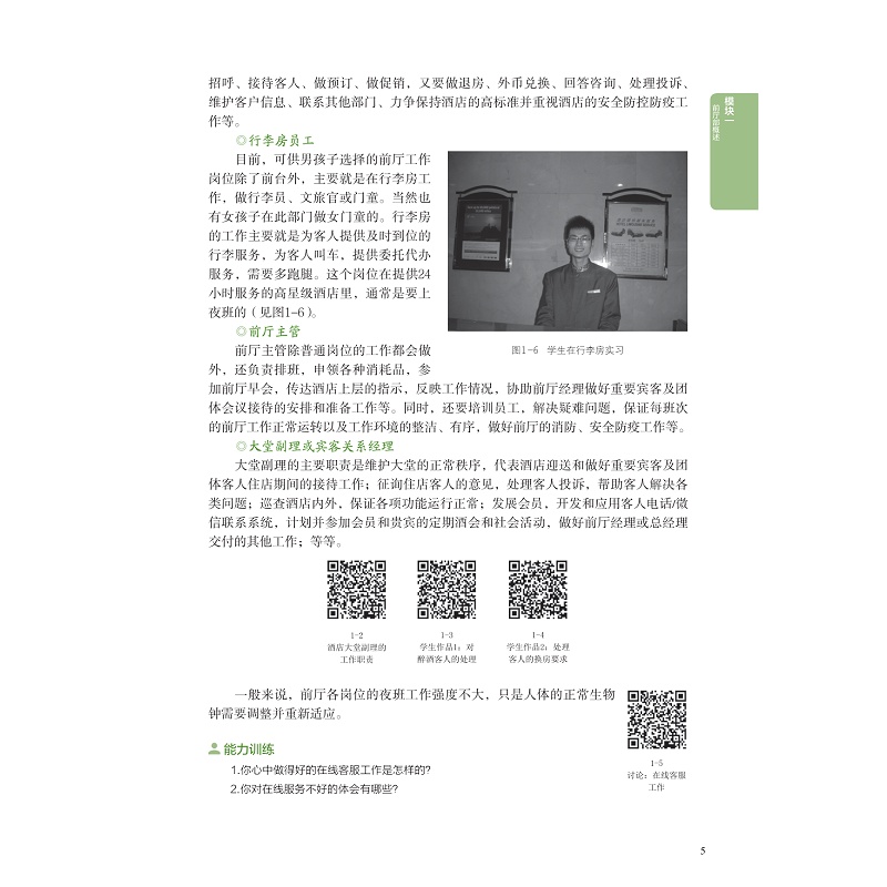 江浩,女,浙江经济职业技术学院工商管理学院酒店管理系副教授,主讲“前厅与客房实务”等课程,具有十多年的一线教学经验,出版专著、教材多部,发表核心期刊论文多篇。