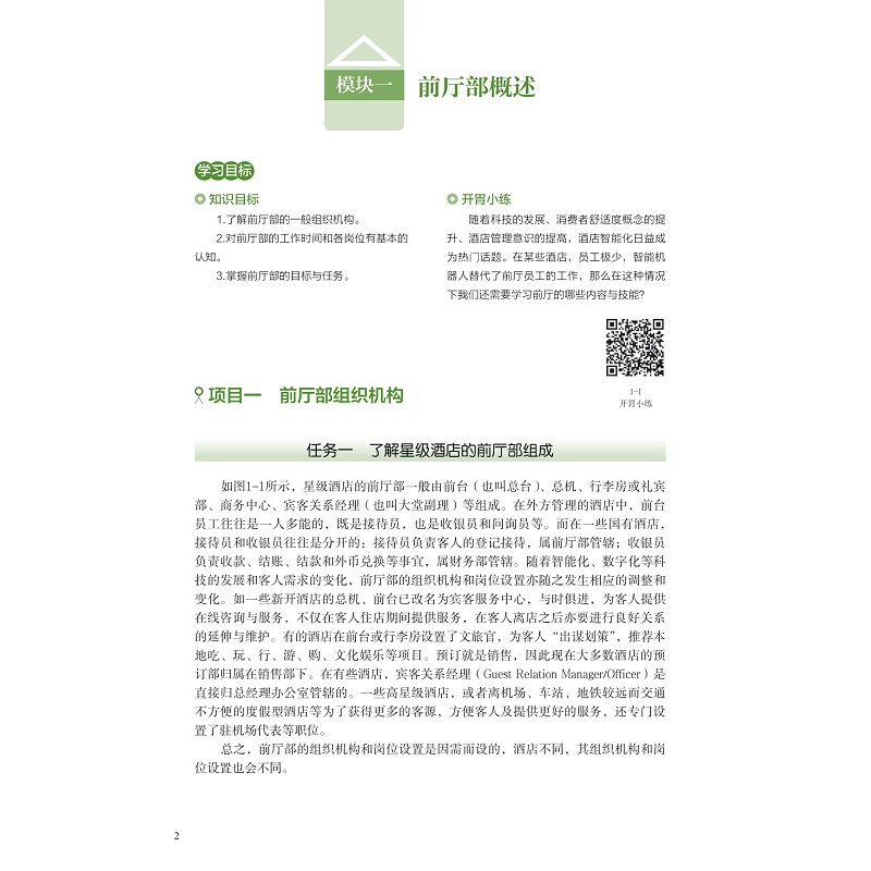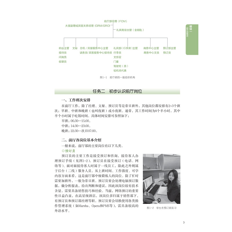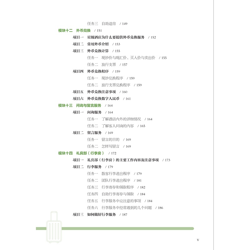 本书为修订版教材,浙江省“十三五”新形态教材。本书通过尽可能少的理论和文字,以及尽可能多的案例和图片,结合学习者的需要推导出需要掌握的知识点,阐述了目前酒店前厅各岗位的主要工作内容和需要注意的事项,主要包括对前厅的概述、酒店产品、房型、房价、房态、预订、前台(含入住、销售、退房、外币兑换、问询与出留言)、行李服务、总机、商务中心、投诉处理、前厅管理等方面。试图通过这样的方式使不熟悉酒店实际工作的高职学生和有志于从事酒店前厅工作的人知道前厅要做什么,具体怎么做,学会操作且明白为什么要这样做,从而为实习、就业打下坚实的基础,获得更广阔的发展空间。本书是根据“项目导向、任务驱动”的能力本位的教学改革需要进行编写的,适合用作高职高专酒店管理专业及旅游管理类专业前厅课程的教学用书。