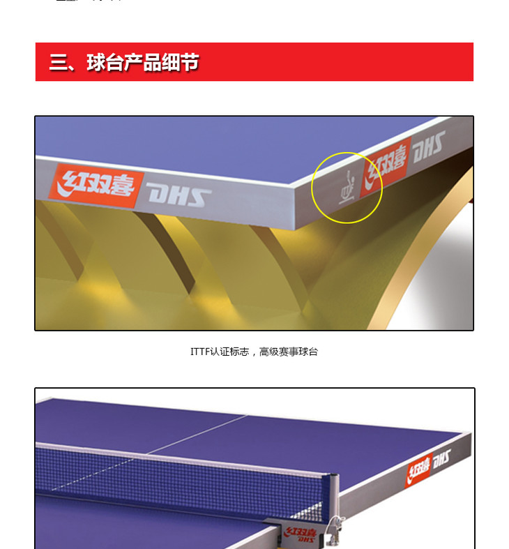 红双喜DHS 金彩虹室内乒乓球台球桌