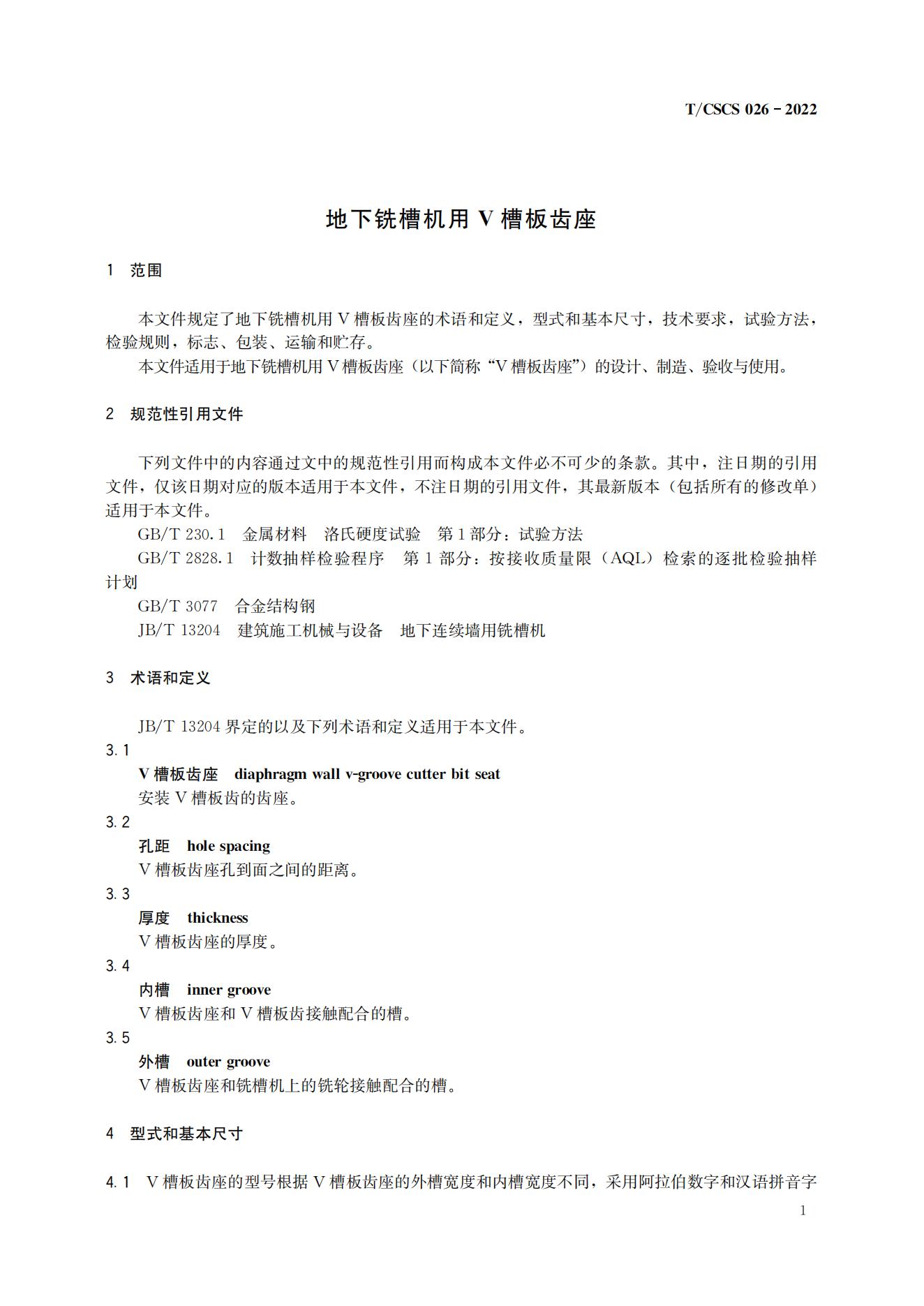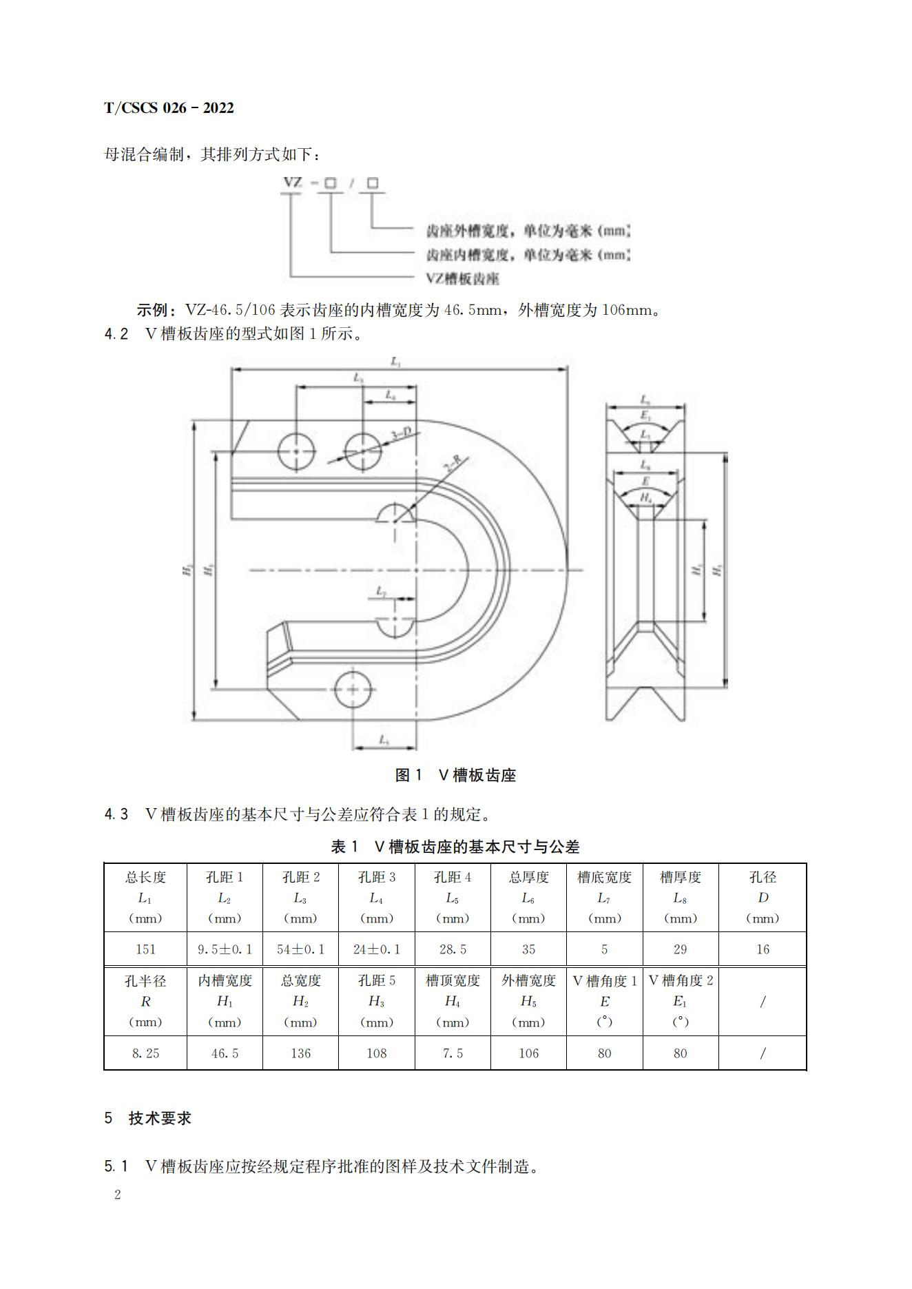 书名:地下铣槽机用V槽板齿座T/CSCS 026-2022