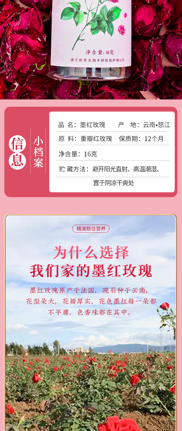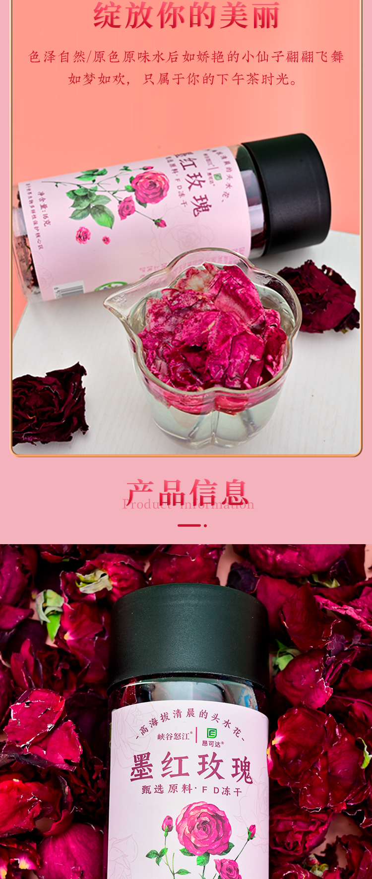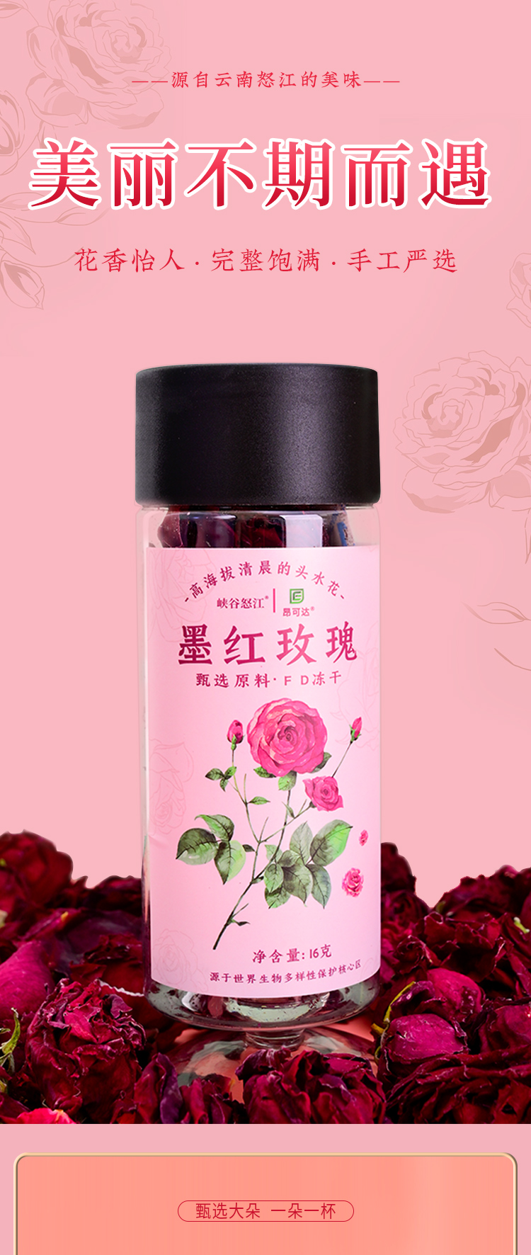 云南【墨红玫瑰 16g/罐】冻干锁鲜 重瓣红玫瑰 原生原色,清香馥郁