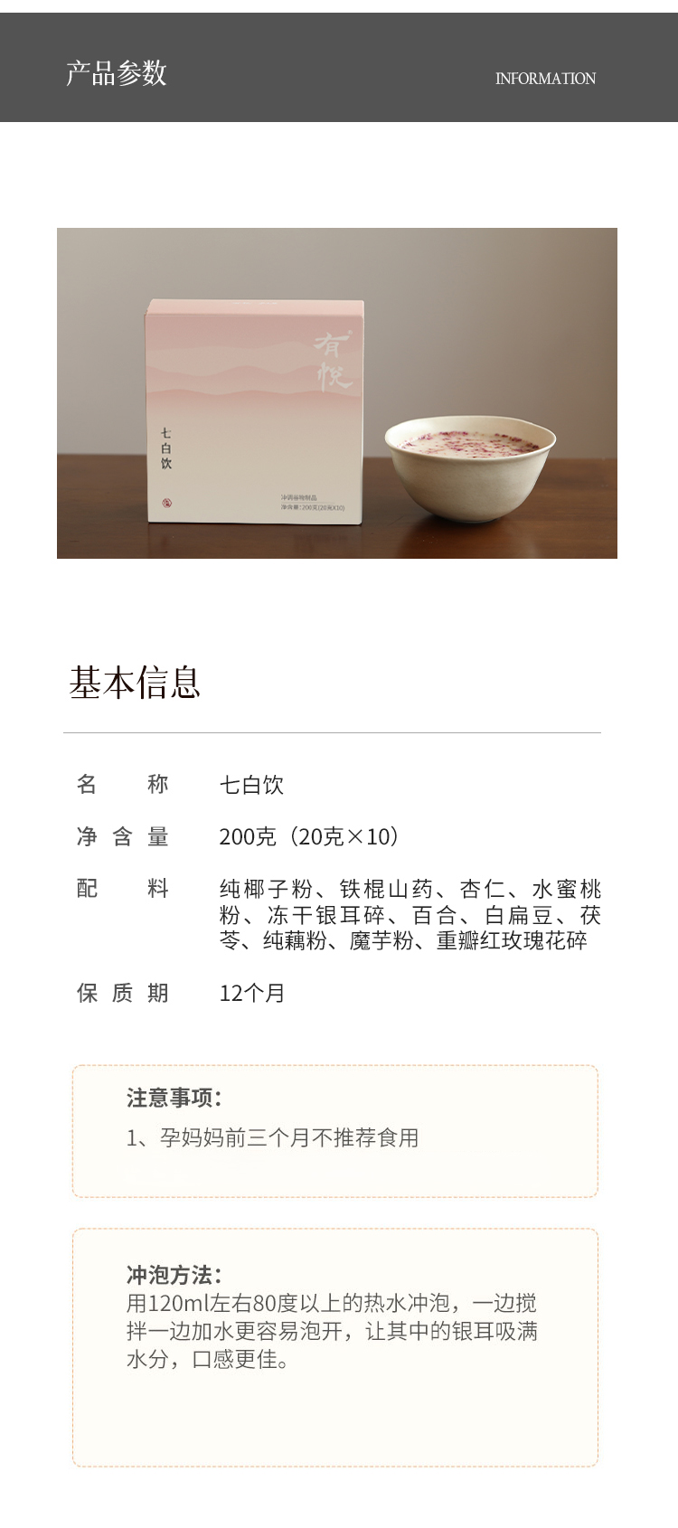 古方七白饮 | 20g*10袋/盒 浓郁椰奶杏仁香 玫瑰清甜丝滑 冲饮下午茶 少点盐