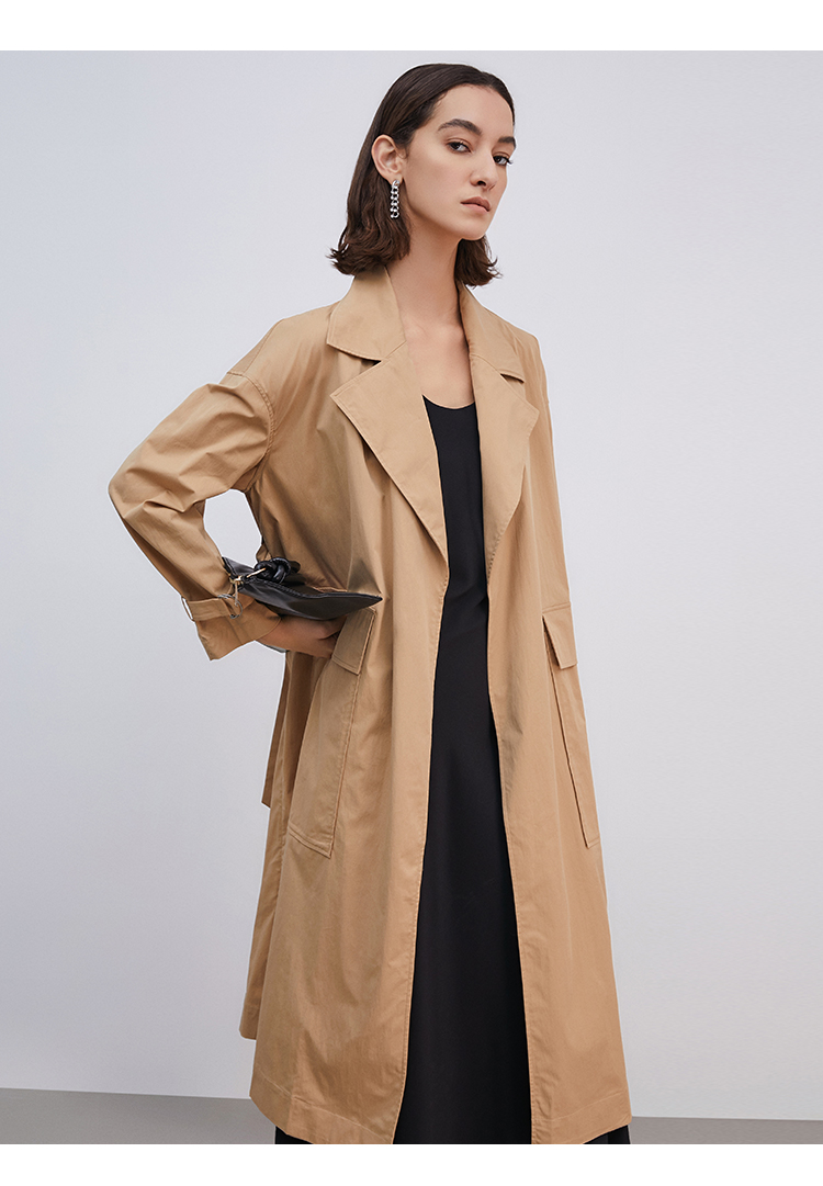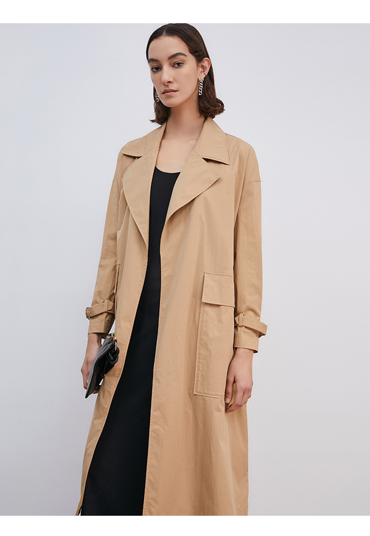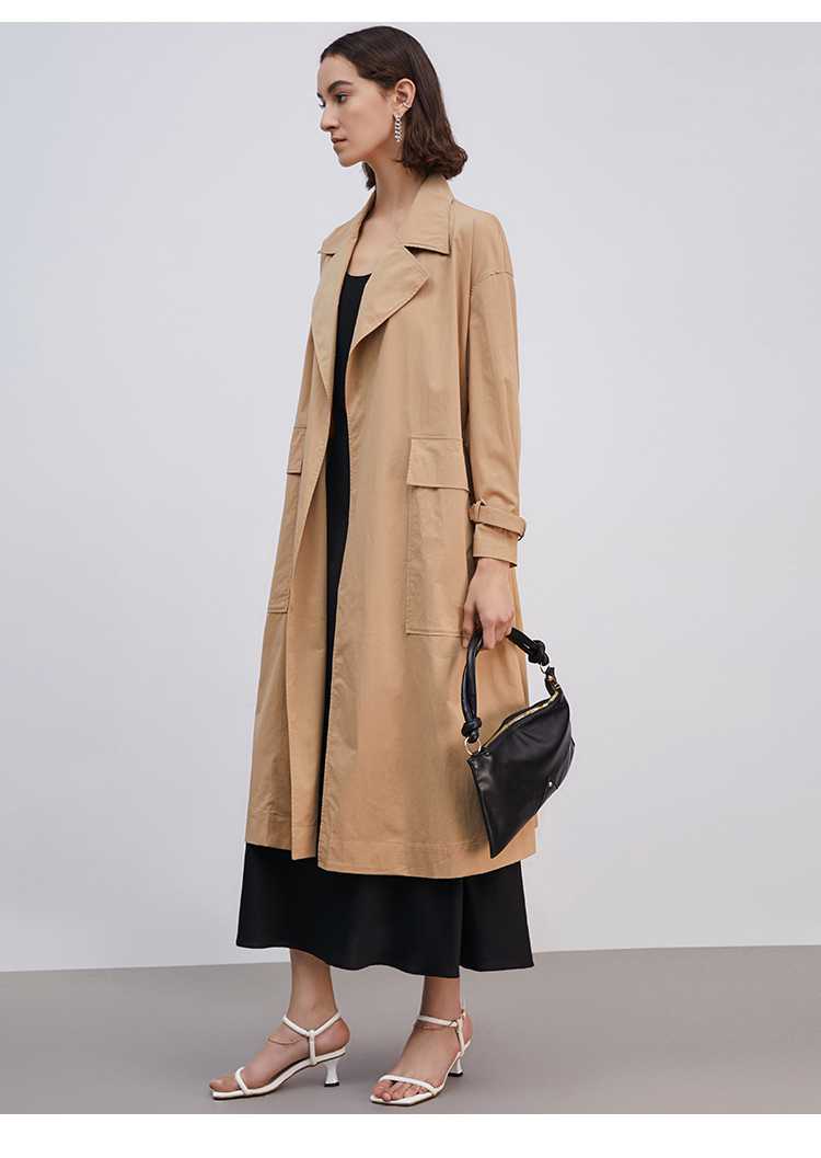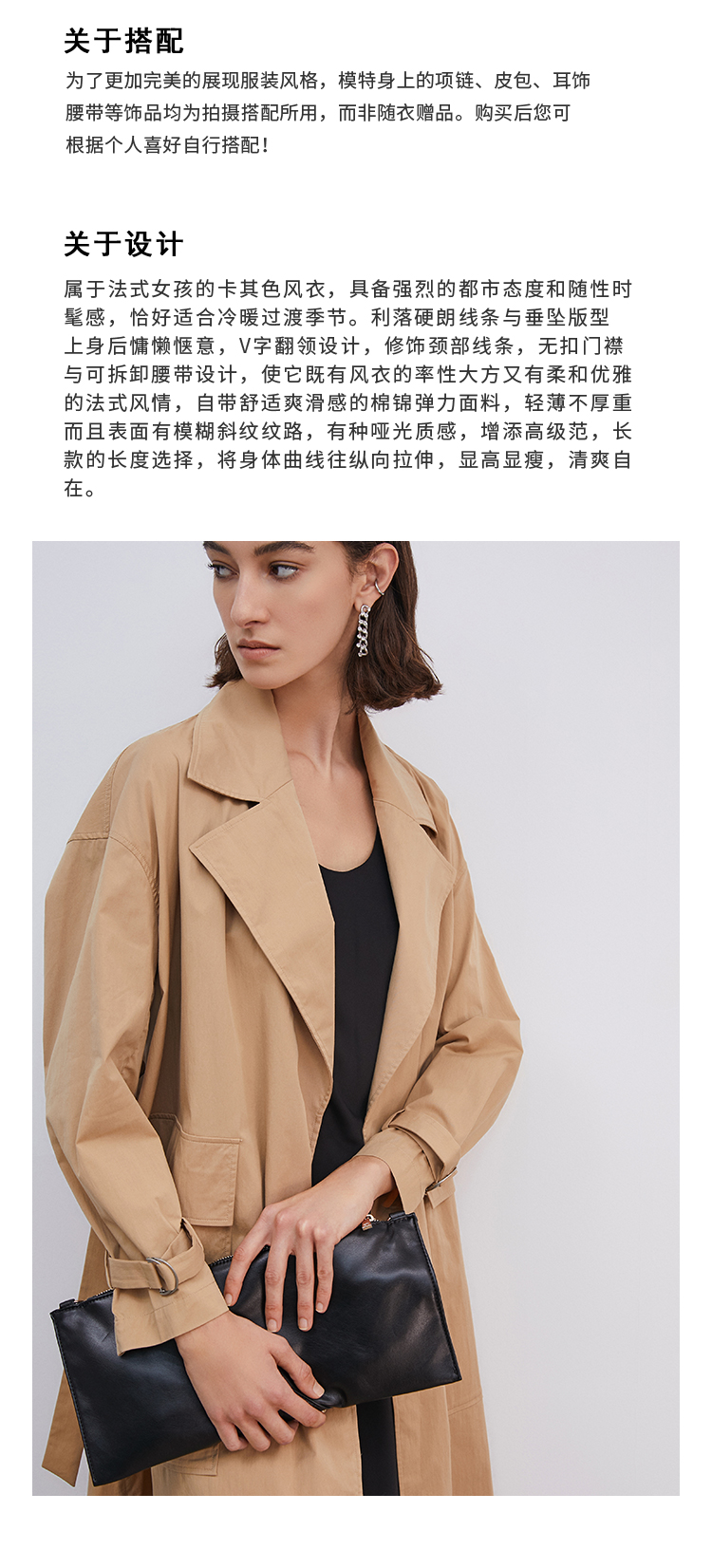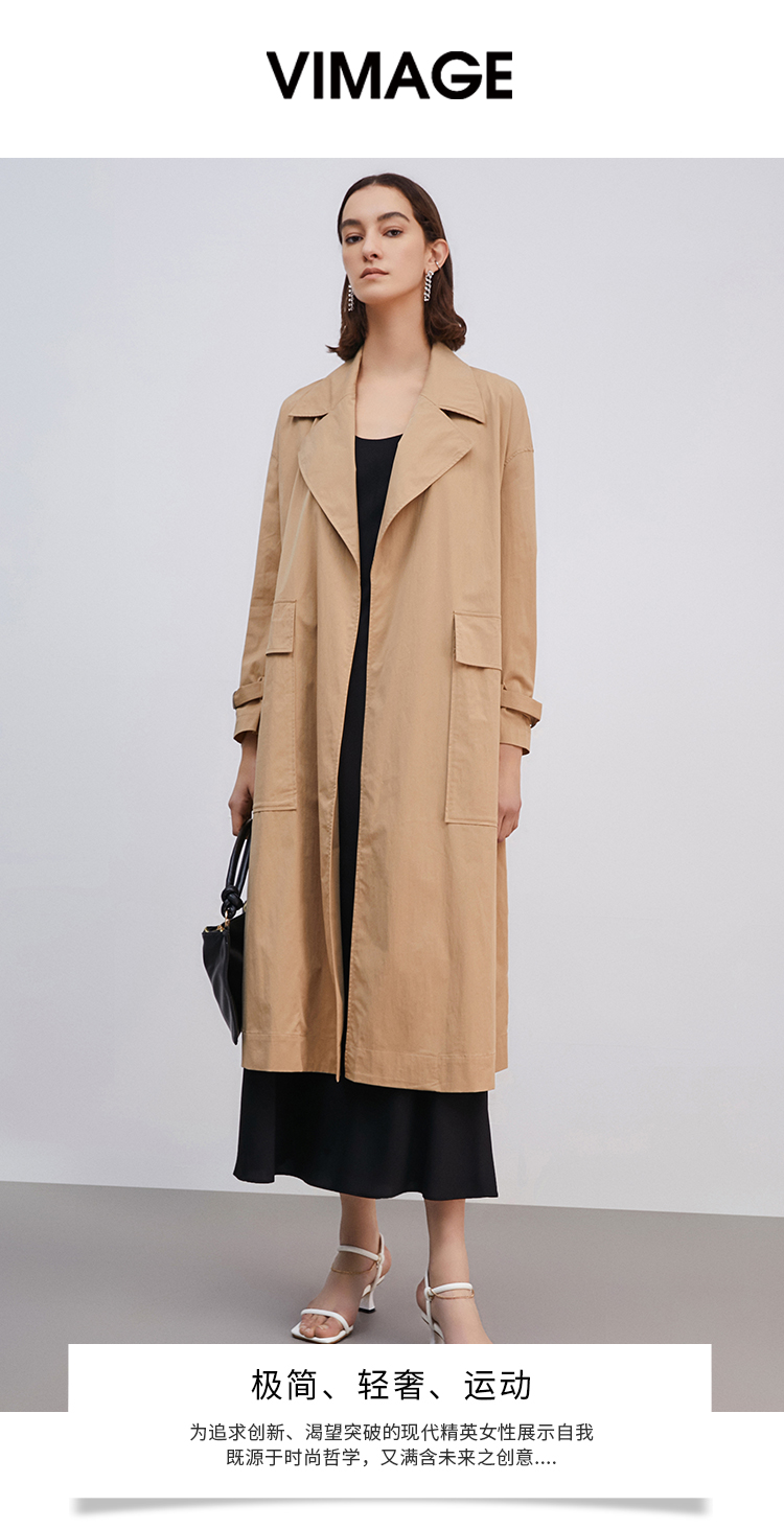VIMAGE纬漫纪春季新款经典翻领长款显瘦百搭大气风衣女外套V1304905