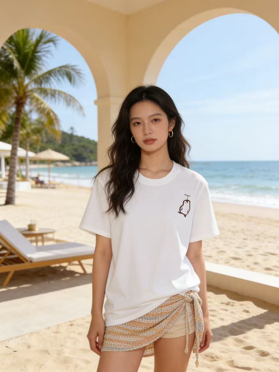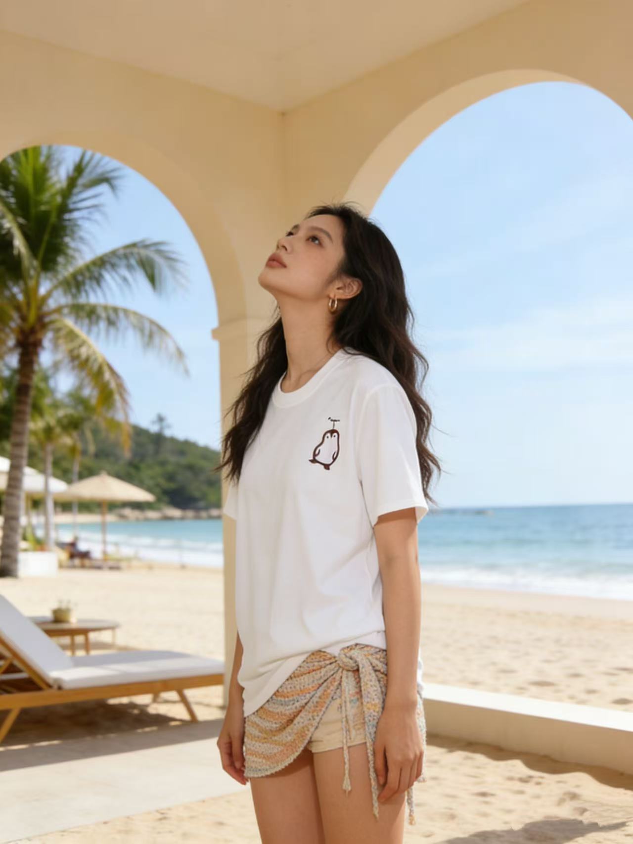 性价比天花板【自营】企鹅印花!7810精梳棉95%圆领短袖T恤上衣-喜出