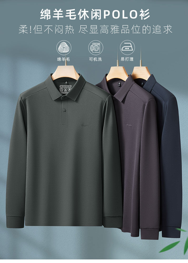 【绵羊毛】大依优型大码男装长袖Polo衫打底商务休闲翻领T恤上衣加肥加大品质