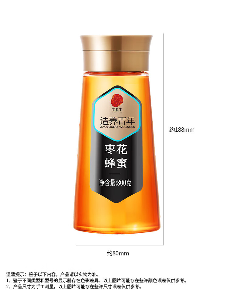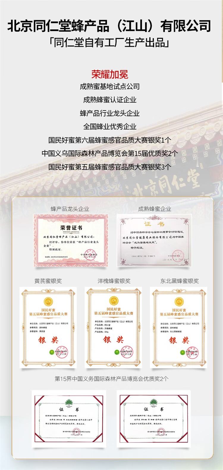 【正宗同仁堂品牌】北京同仁堂 枣花蜂蜜800克 漏斗型瓶装 原料纯粹 拒绝添加 便携易使用SY