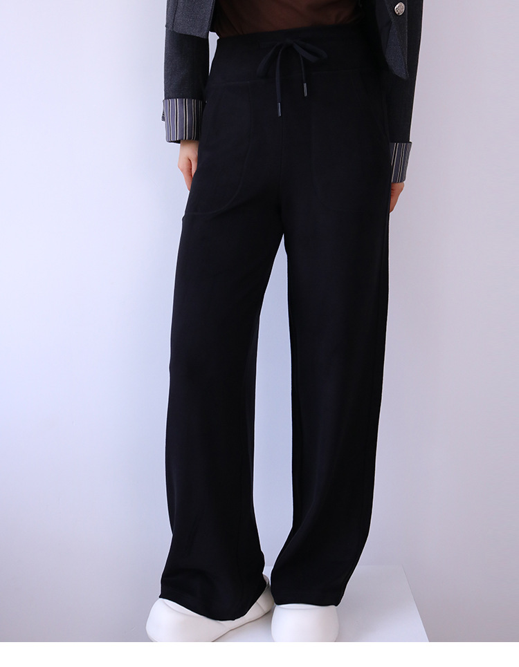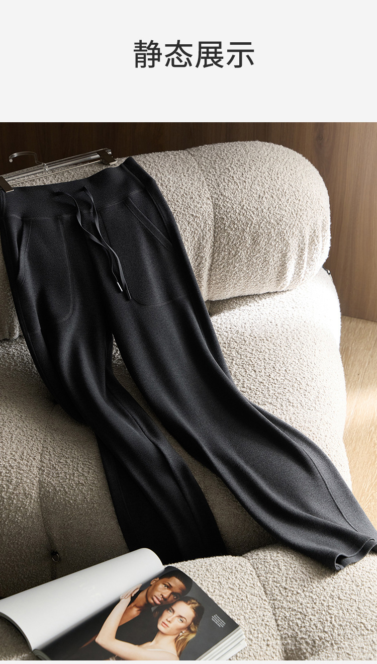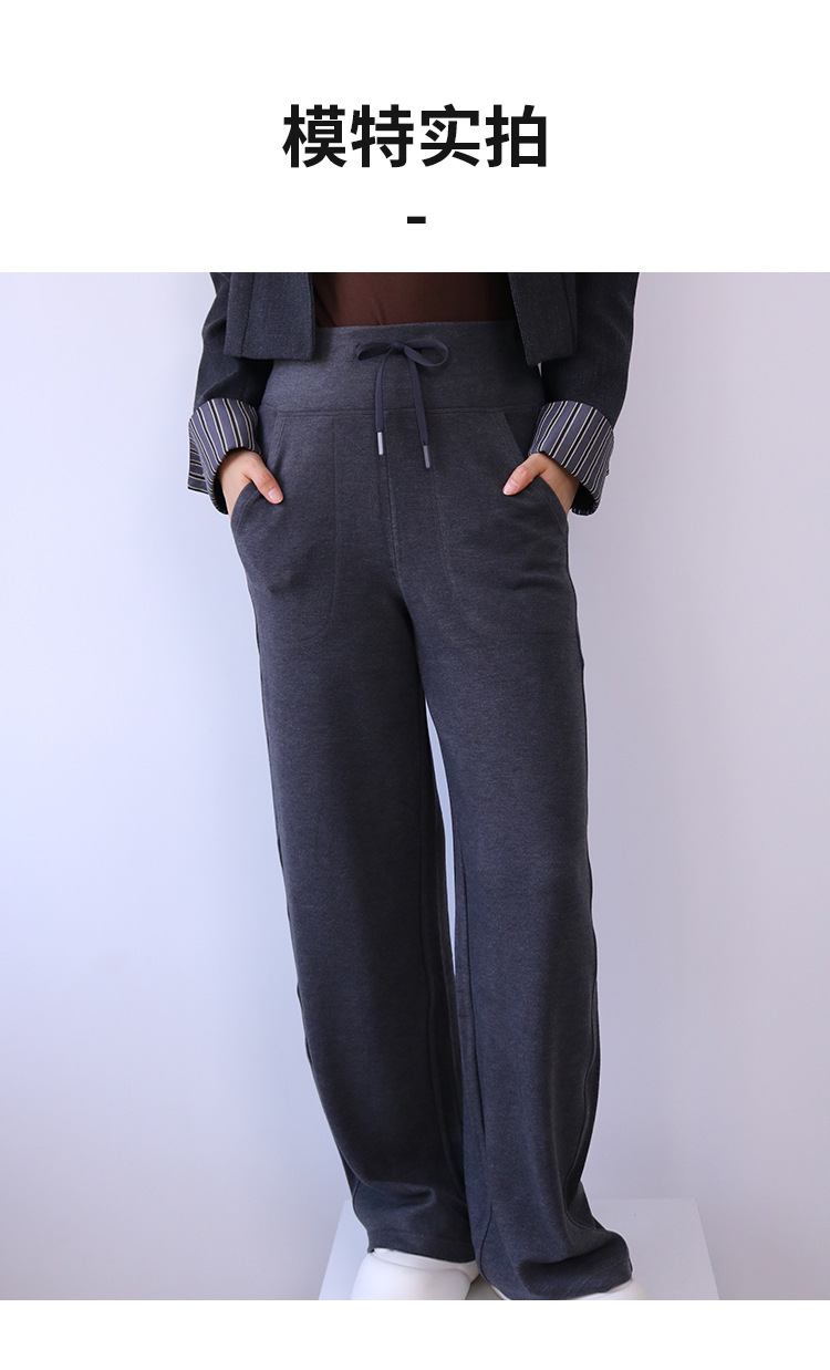 丁摩 山羊绒保暖毛呢绒抽绳口袋喇叭裤女S210 商品图4