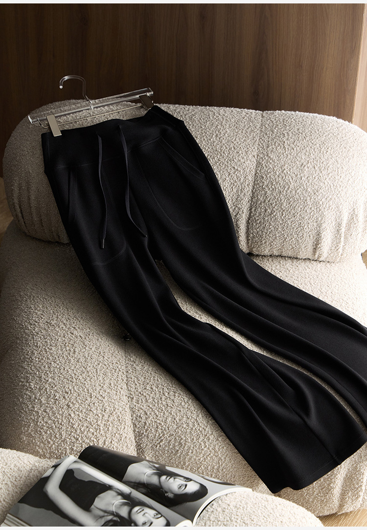丁摩 山羊绒保暖毛呢绒抽绳口袋喇叭裤女S210