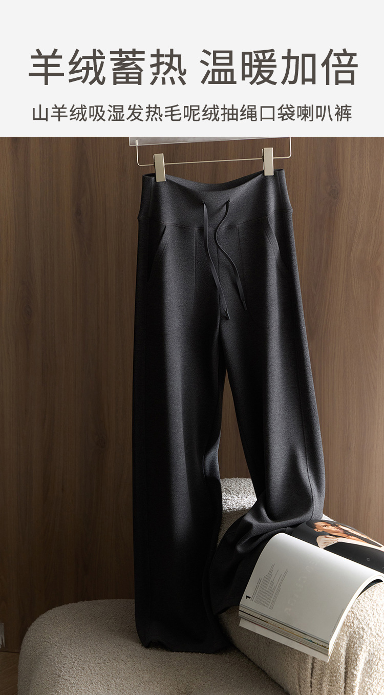 丁摩 山羊绒保暖毛呢绒抽绳口袋喇叭裤女S210 商品图2