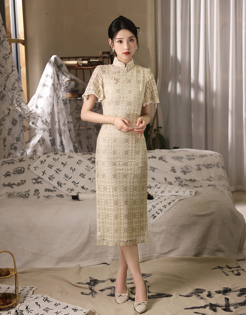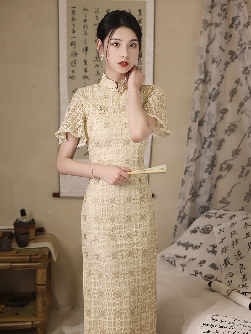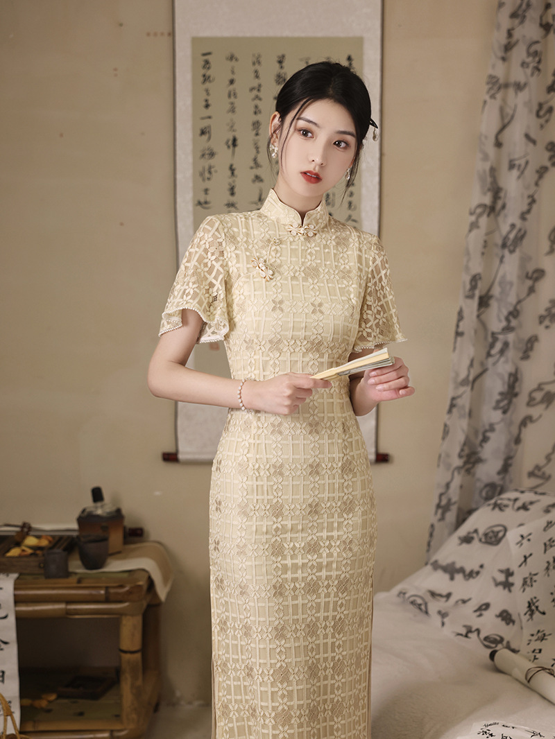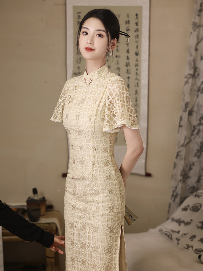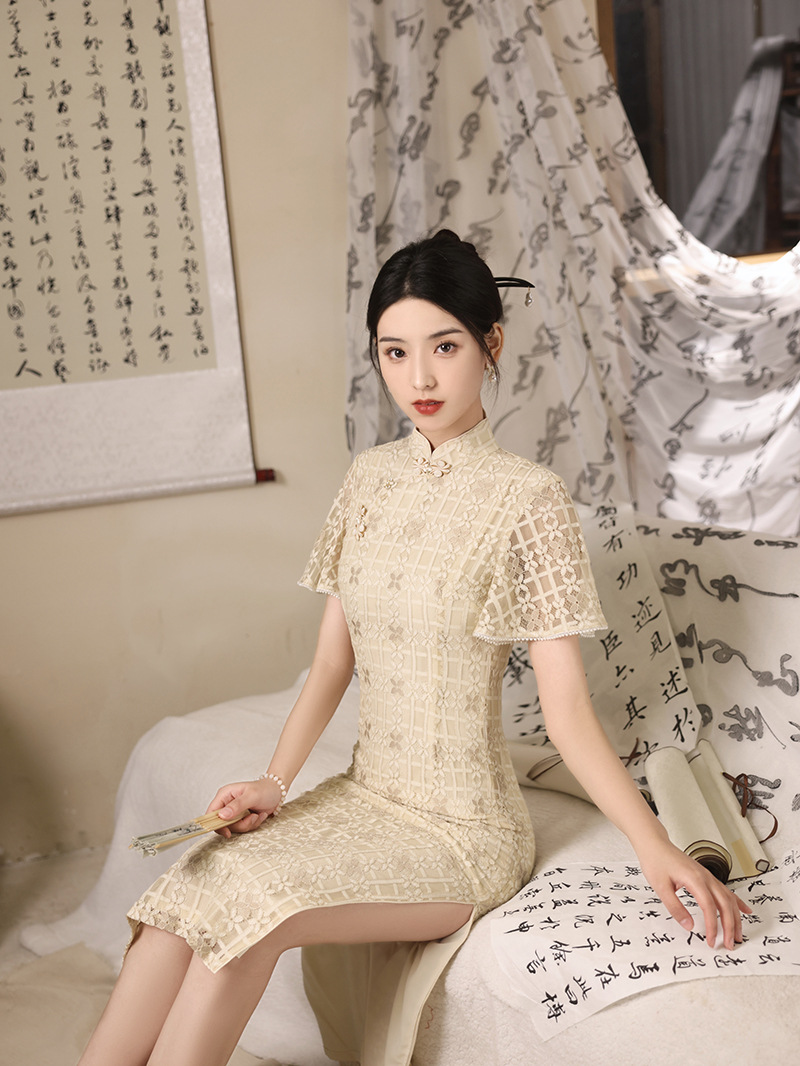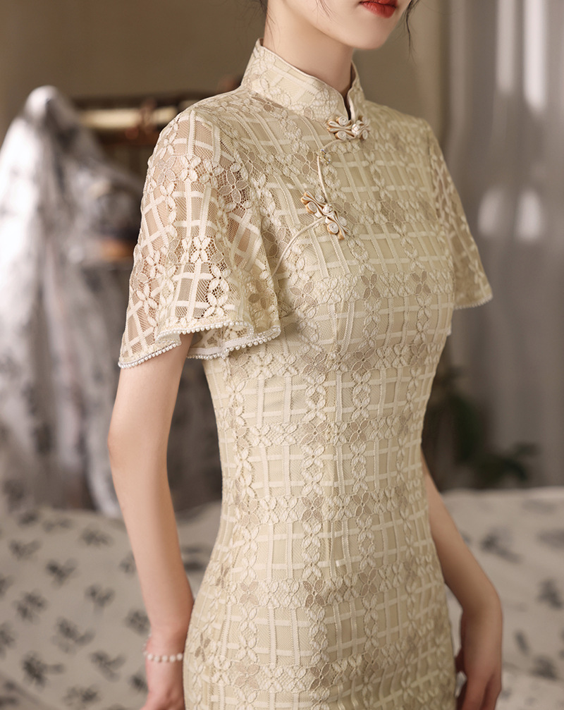 春夏新款,改良旗袍蕾丝气质优雅设计感复古中国风旗袍女XL-23102