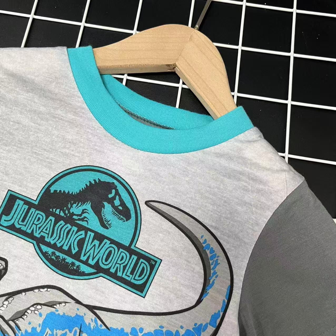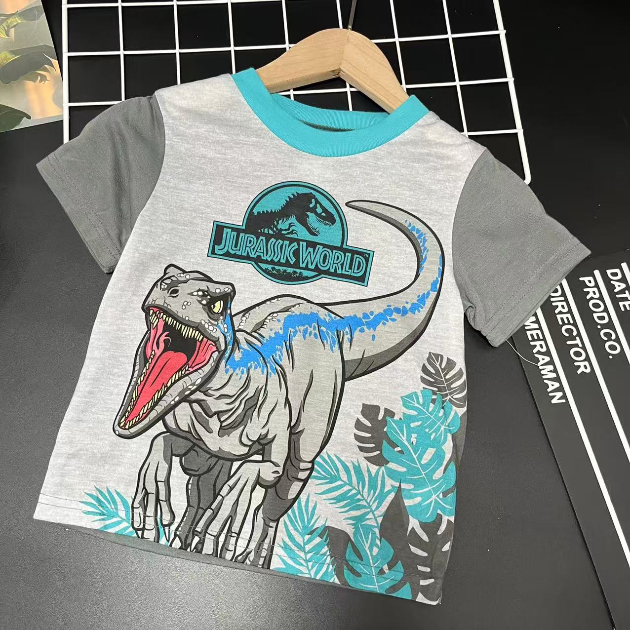 【选2件15元-NO退】4恐龙灰蓝卡通短袖-微脏-喜出