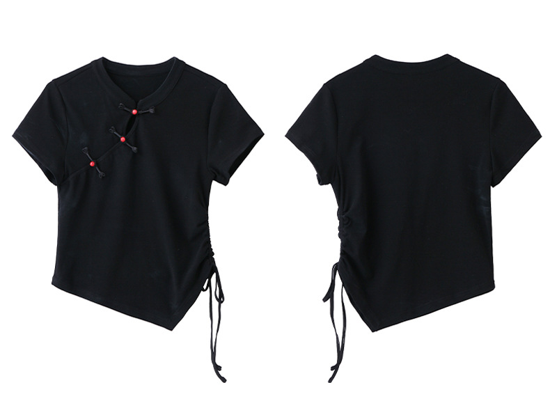 夏季棉洋气雪纺边修身短款时尚小衫LM06562