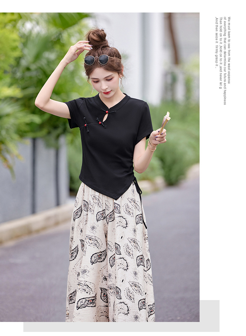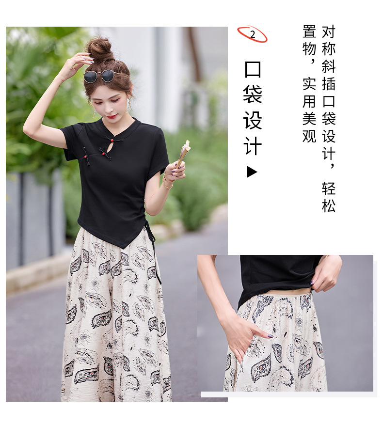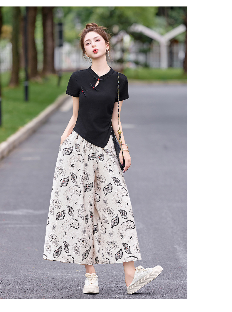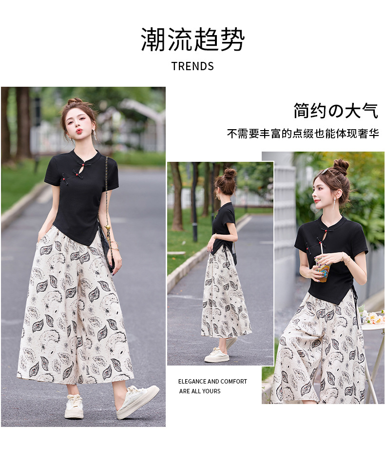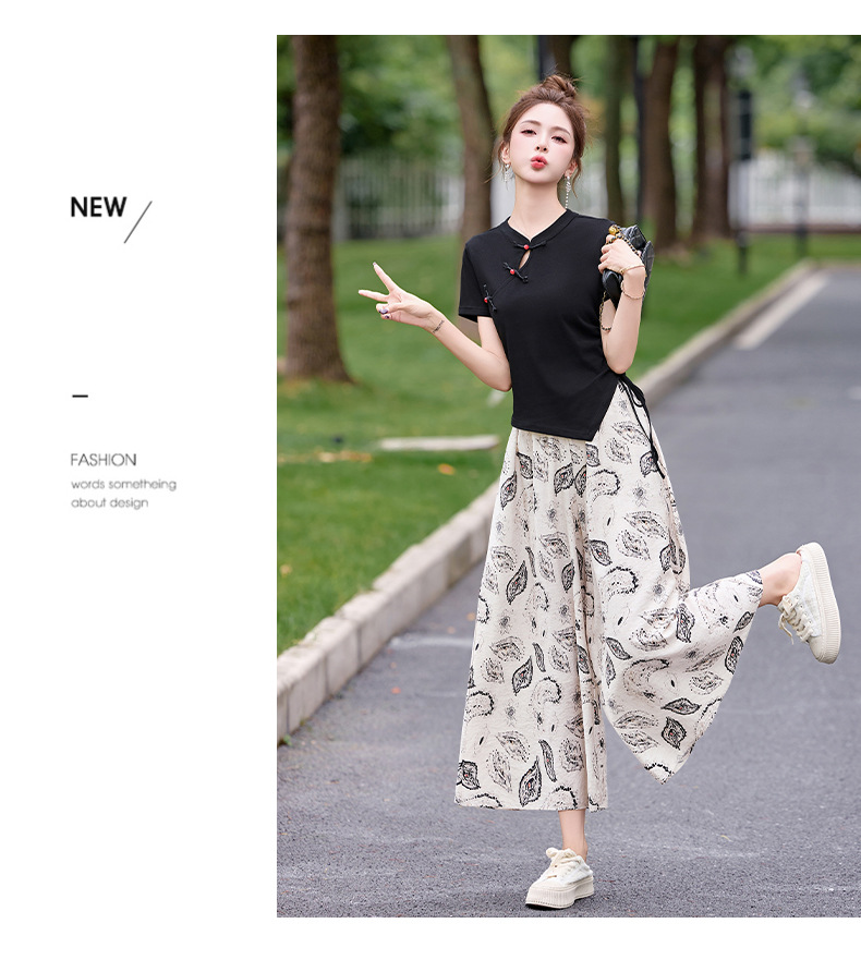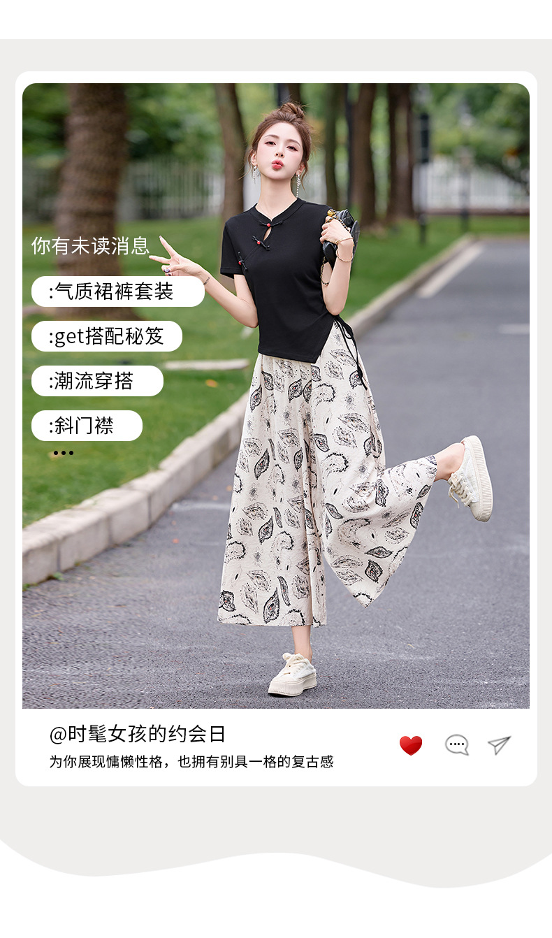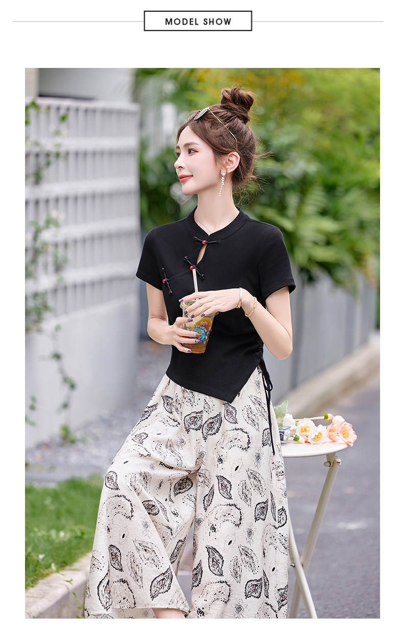 新中式盘扣上衣阔腿裤套装2025夏季新款气质显瘦休闲两件套GJC2575