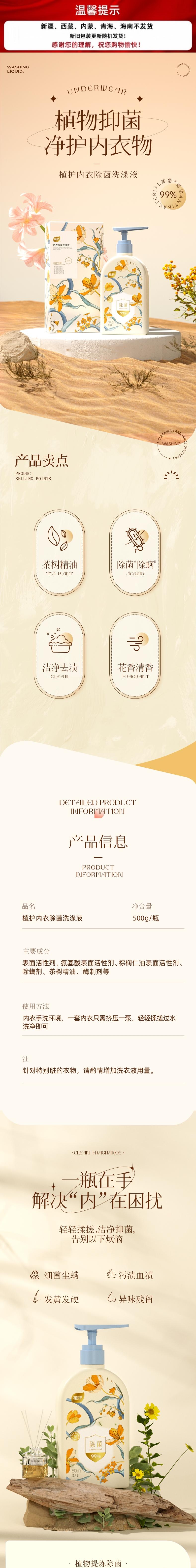 植护 纯欲晚香内衣洗衣液500g*3瓶 zhw50g3p