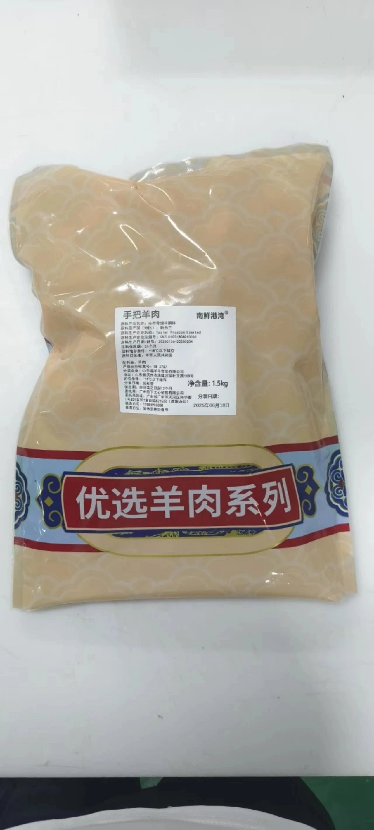 【产品名称】:手把羊排 【商品品牌】:南鲜港湾 【产品分装产地】:山东 【原料产地】:新西兰 【产品规格】:1500克(3斤装) 【生产日期】:2025年6月随批次更新 【保质日期】:12个月 【储存条件】:-18°C以下冷冻保存 【发货地区】:山东 【发货时间】:72小时 【发货快递】:顺丰 【运费标准】:包邮,黑龙江+2元, 不发货地区:新疆、西藏、甘肃、青海、云南、海南、港澳台地区不发 【售后说明】 1、该产品属于食品类,不支持无理由退换货; 2、产品已经发出的情况下,不支持无理由拒收拦截撤单改地址 3、如出现异常情况,请带面单+产品拍照+产品包装照片与我们联系,我们会第一时间处理,如产品有质量问题可在收货12小时之内,联系客服进行售后或者补发 ; 4.整块原切包装,不以真空包装为售后标准,无质量问题不退不换!包装内食品缓化不作为售后标准!介意慎拍! 5.羊排原料日期为24个月有效日期,不以原料日期等问题作为售后标准,介意慎拍 6.羊排的肥瘦比例不作为售后标准!只要是羔羊,含肉率都是肥瘦相间,介意慎拍!